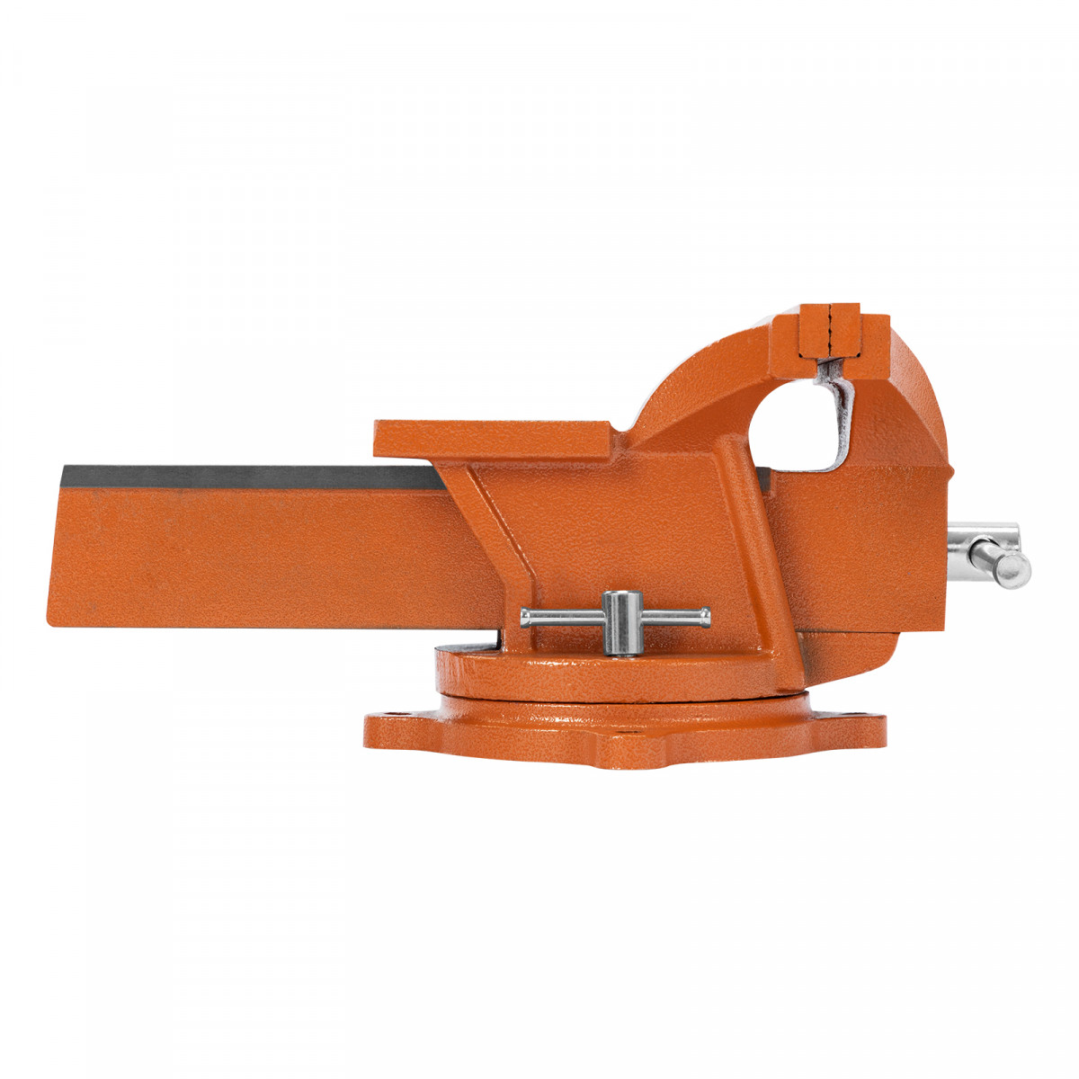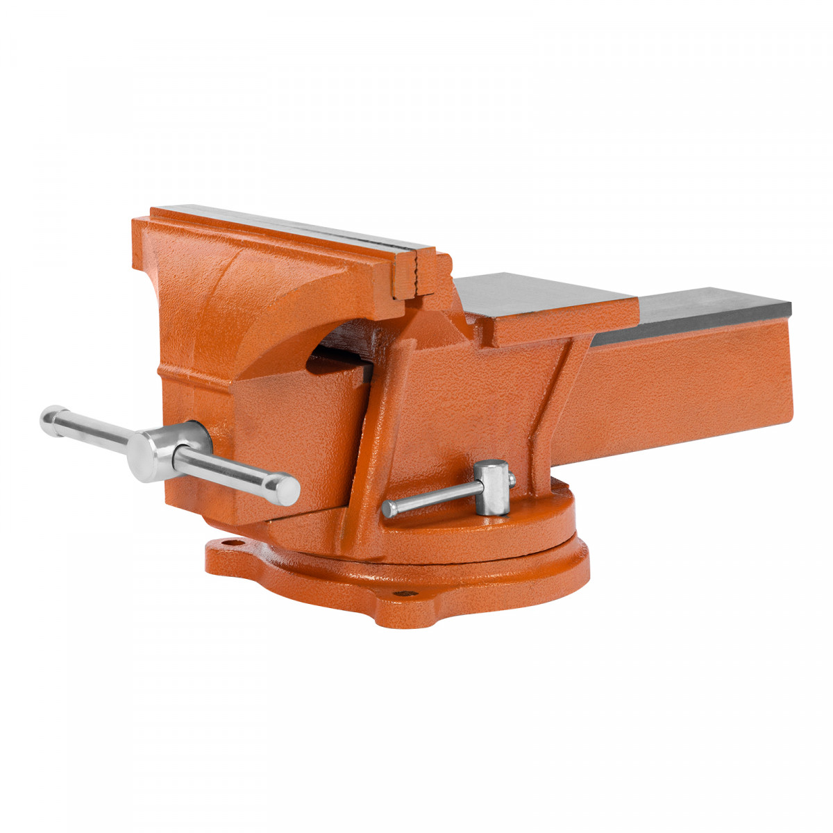 Поворотные тиски Sparta с наковальней обеспечивают высокую прочность благодаря корпусу из чугуна и губкам из стали.
