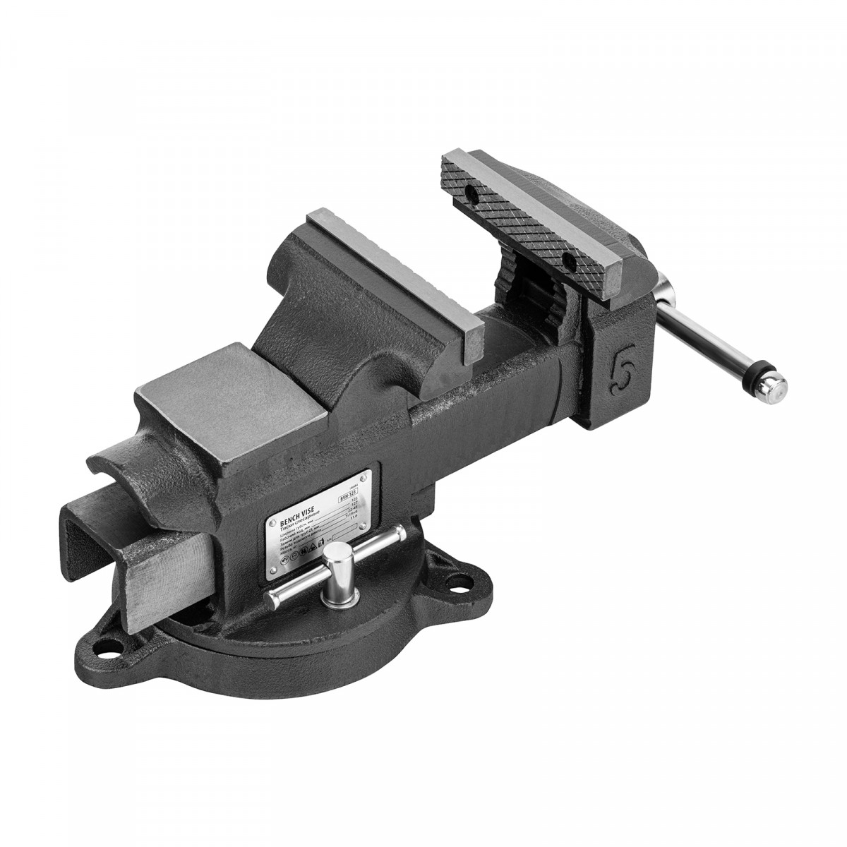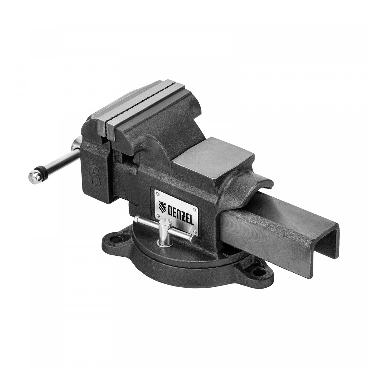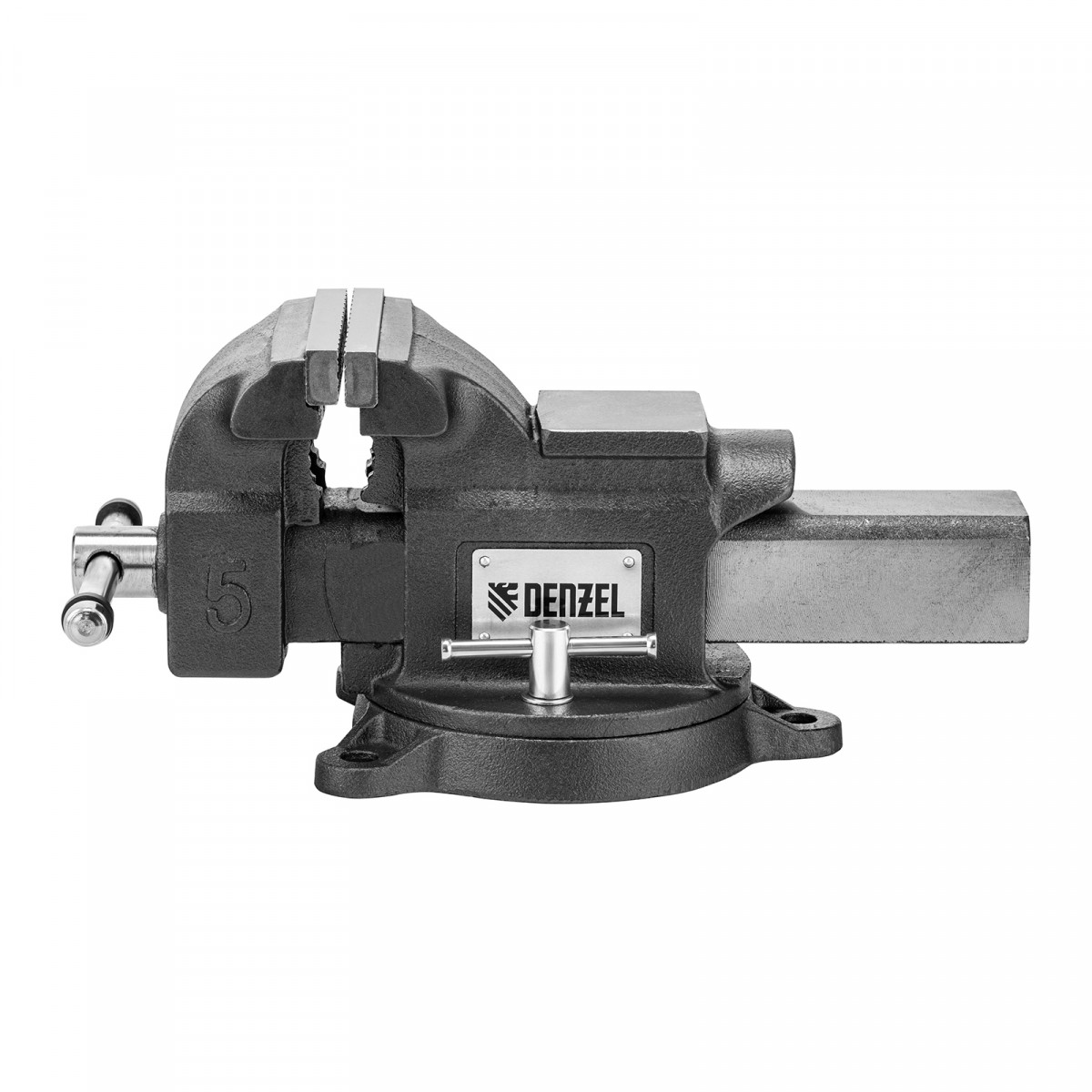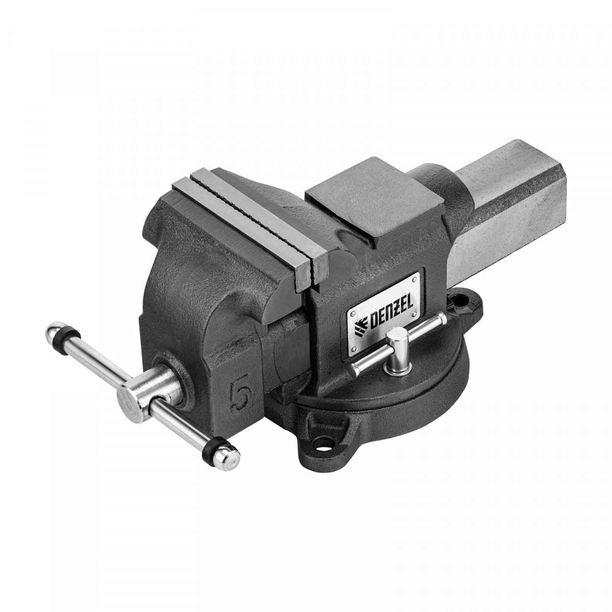 Тиски слесарные BVH-125, 125 мм, поворотные, стальная направляющая, с наковальней //Denzel