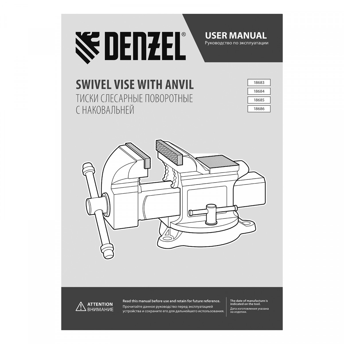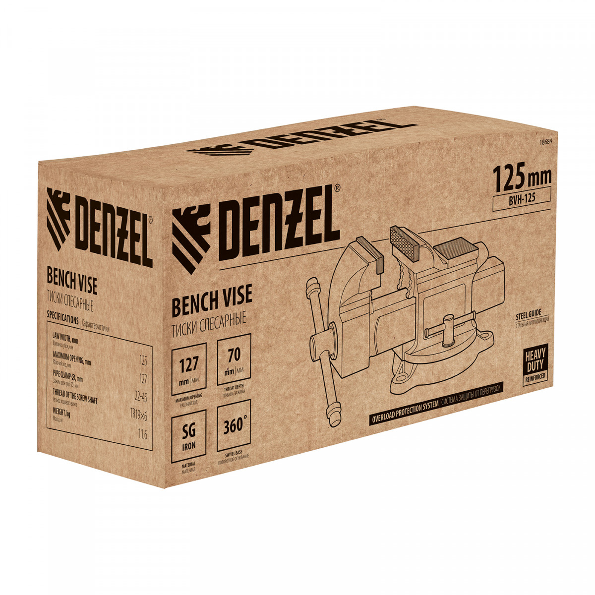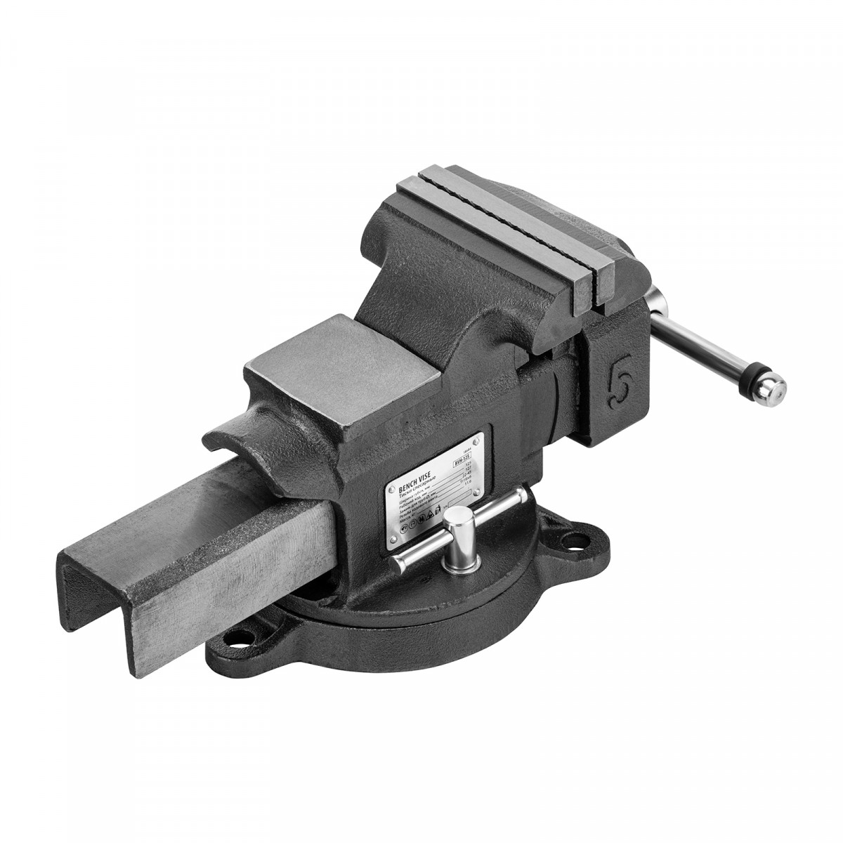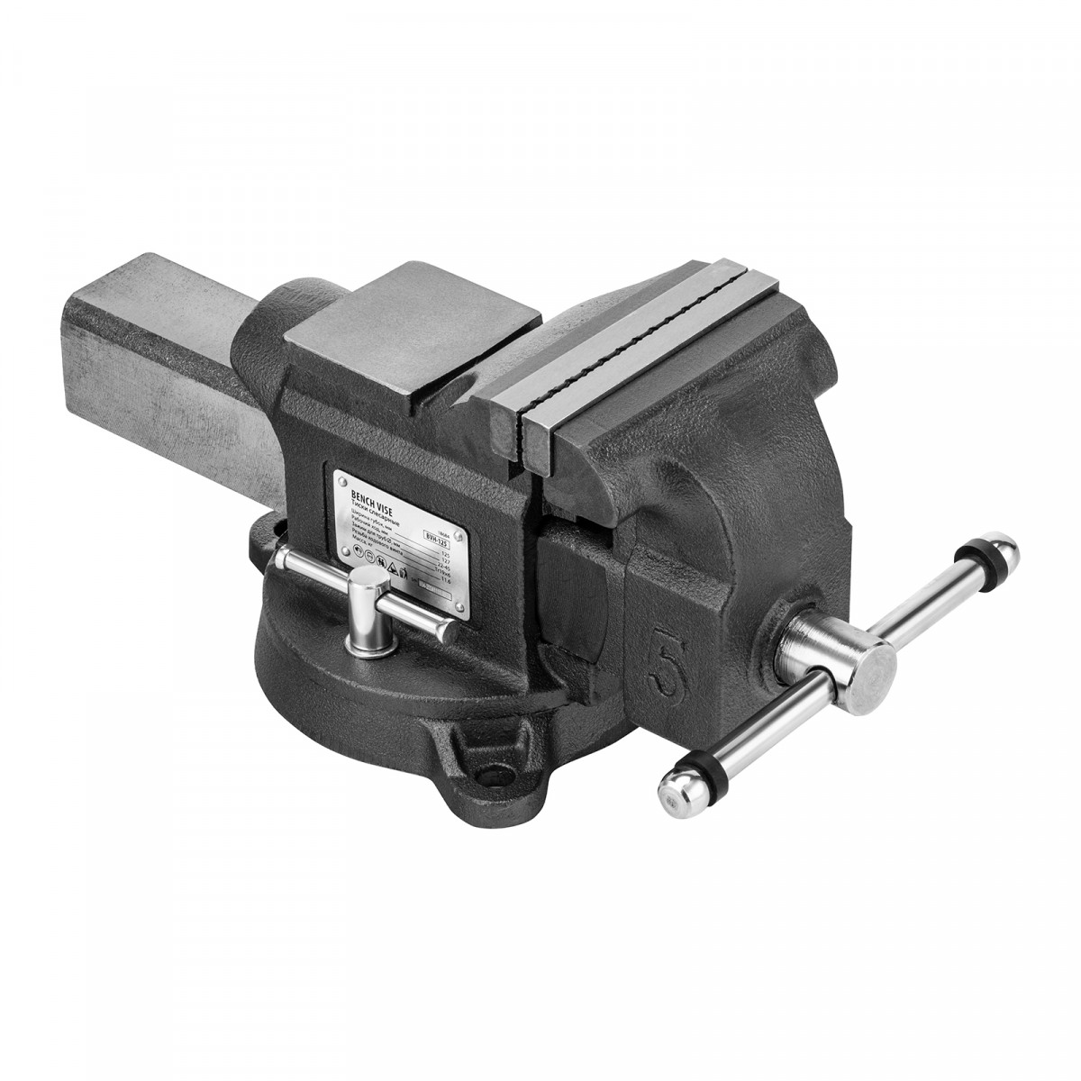 Тиски слесарные BVH-125, 125 мм, поворотные, стальная направляющая, с наковальней //Denzel