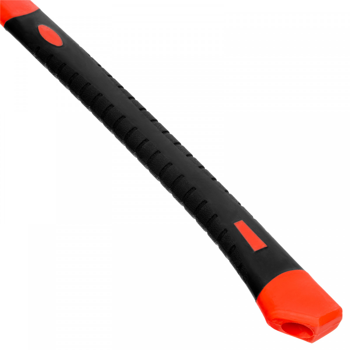 - Комфортная работа — фибергласовое топорище с резиновыми накладками поглощает колебания от ударов, снижая нагрузку на руки, а также обеспечивает надежный хват.