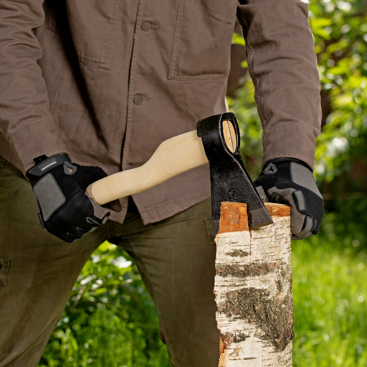 • Эффективная рубка крупных бревен и пней — топор имеет длинную рукоятку 500 мм и большой вес 1700 г.
