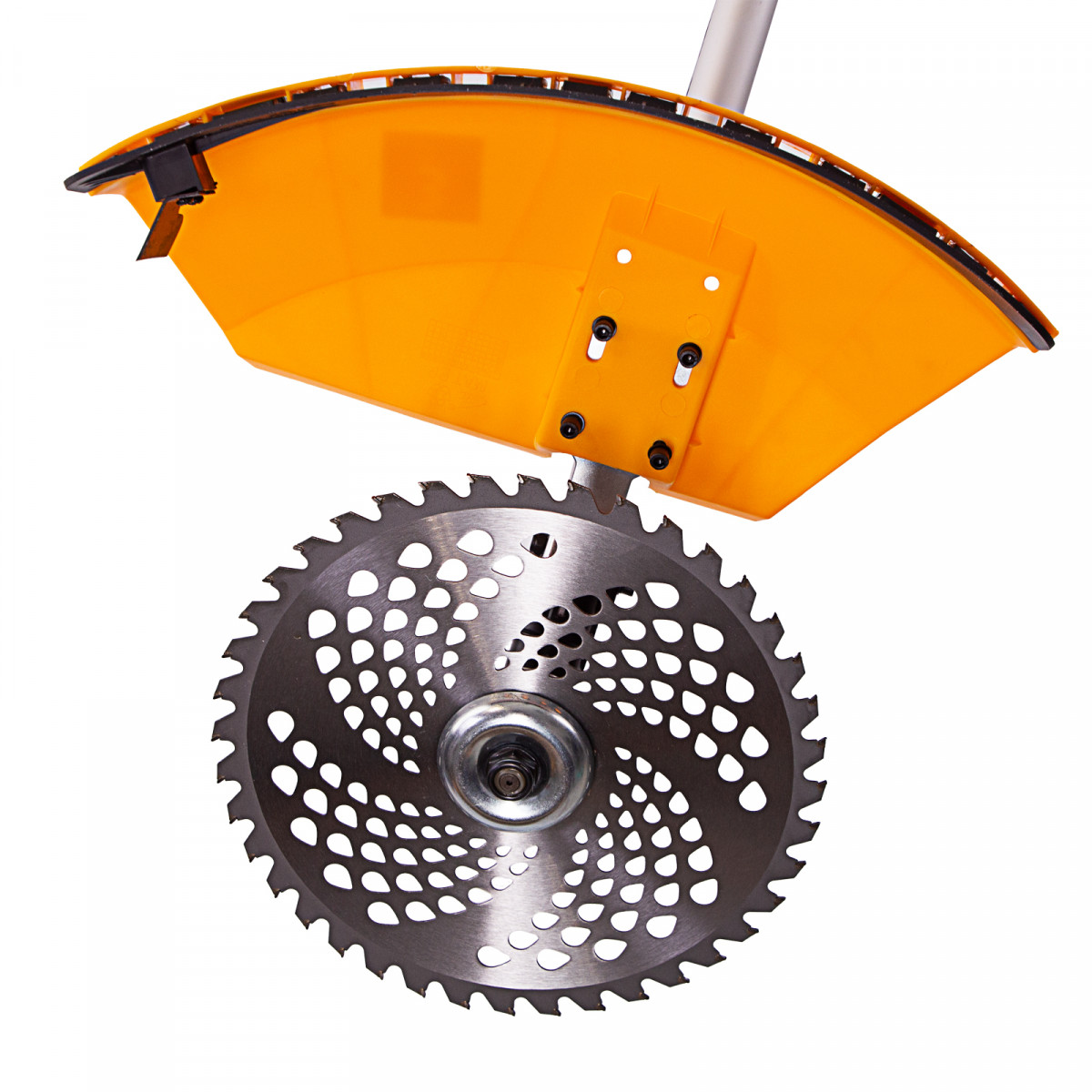- Безопасность — защитный пластиковый кожух предохраняет пользователя от вылета травы, камней и щепок.