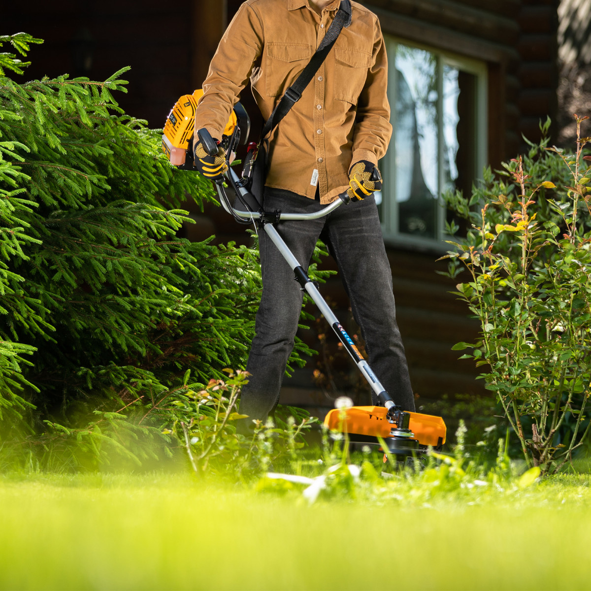 - Комфортное использование — благодаря малому весу триммера 7,6 кг, системе гашения вибраций, сбалансированности и удобному управлению даже длительная работа не вызывает дискомфорт.