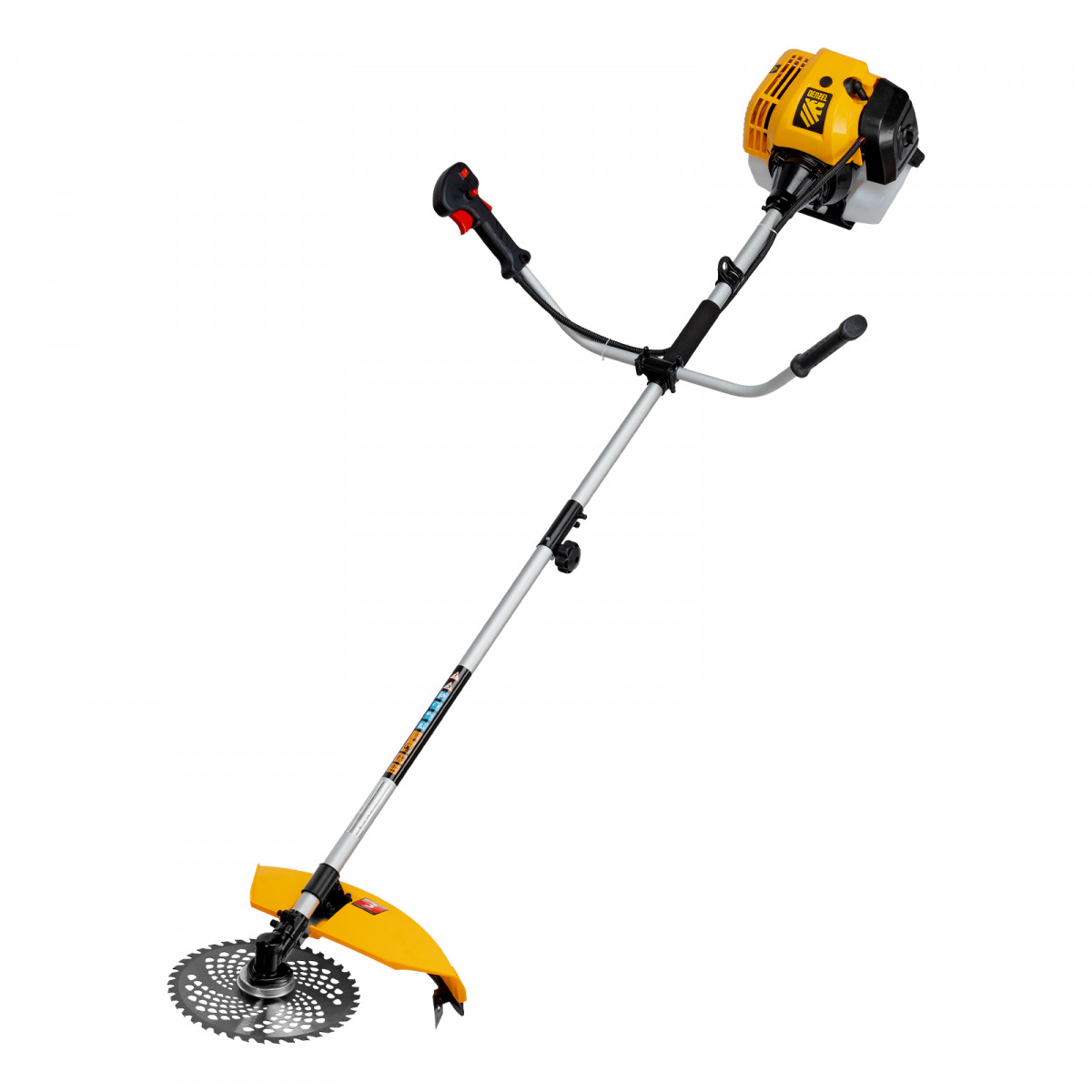 Бензиновый триммер Denzel DT-43S 96225 с двигателем объемом 43 см3 и мощностью 2,5 л.с., с разъемной штангой, состоит из 2 частей. Используется для подравнивания газона, скашивания травы всех типов, в том числе с жесткими древовидными стеблями (полыни, крапивы, лебеды, борщевика), а также срезания кустарника и молодых побегов деревьев с диаметром стволов до 10 мм. Это оптимальный вариант для работы в труднодоступных местах: вокруг насаждений, вдоль садовых дорожек, возле стен дома и т. д.,Мощный двухтактный двигатель обеспечивает высокую частоту вращения оснастки — 9500 об/мин. Ширина скашивания диском составляет 25,5 см, леской — 42 см. Поэтому можно обработать большой участок за короткое время.