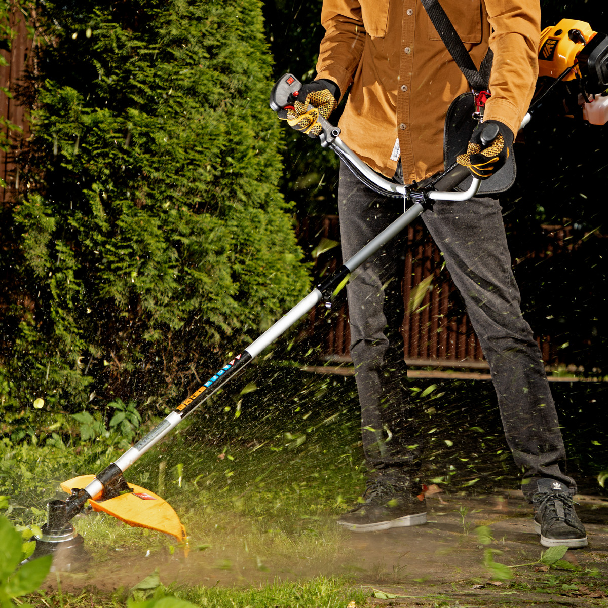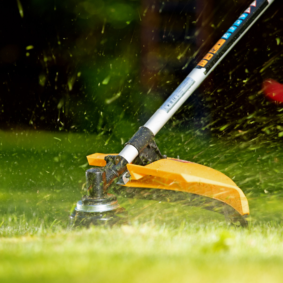 • Малый вес 7,4 кг — триммер удобно держать в руках и маневрировать на сложных участках.
