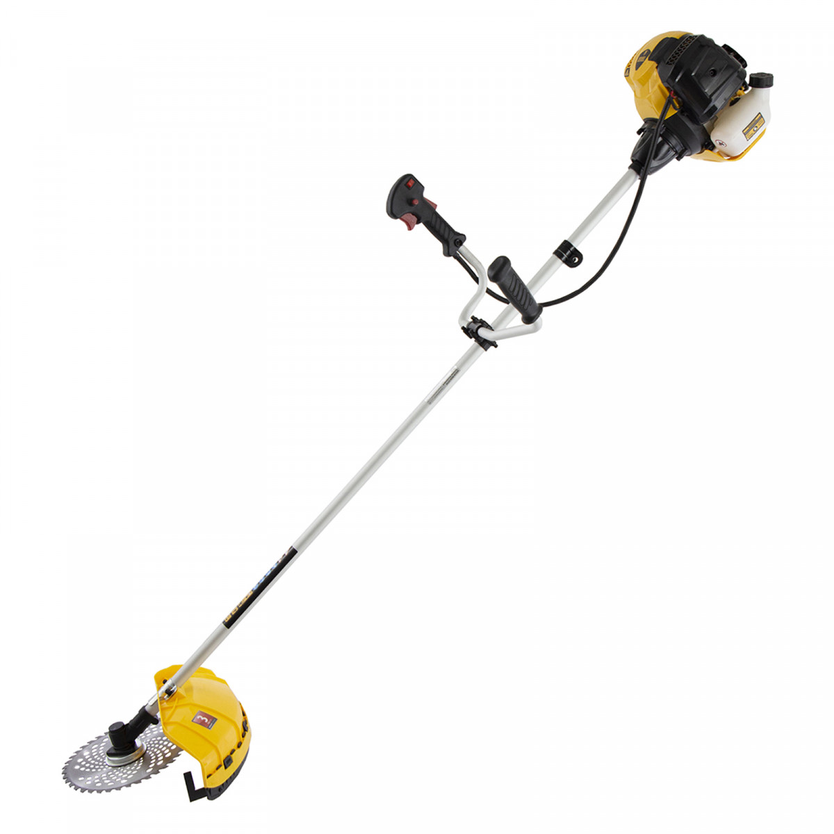 Бензиновый триммер Denzel DTL-43 96263 с двигателем объемом 43 см3, имеет неразъемную штангу и поставляется комплектом из 2 частей. Предназначен для скашивания травы всех типов, в том числе с жесткими древовидными стеблями (полыни, крапивы, лебеды, борщевика), а также срезания кустарника и молодых побегов деревьев с диаметром стволов до 10 мм. Двигатель мощностью 2,5 л.с. обеспечивает скорость вращения насадок 9500 об/мин. В комплект входят 2 оснастки: катушка с леской (обеспечивает ширину скашивания 42 см) и остро заточенный пильный диск (25,5 см). Триммер не зависит от наличия электросети, поэтому его можно использовать вдали от дома. Эргономичная конструкция обеспечивает маневренность даже на труднодоступных участках.