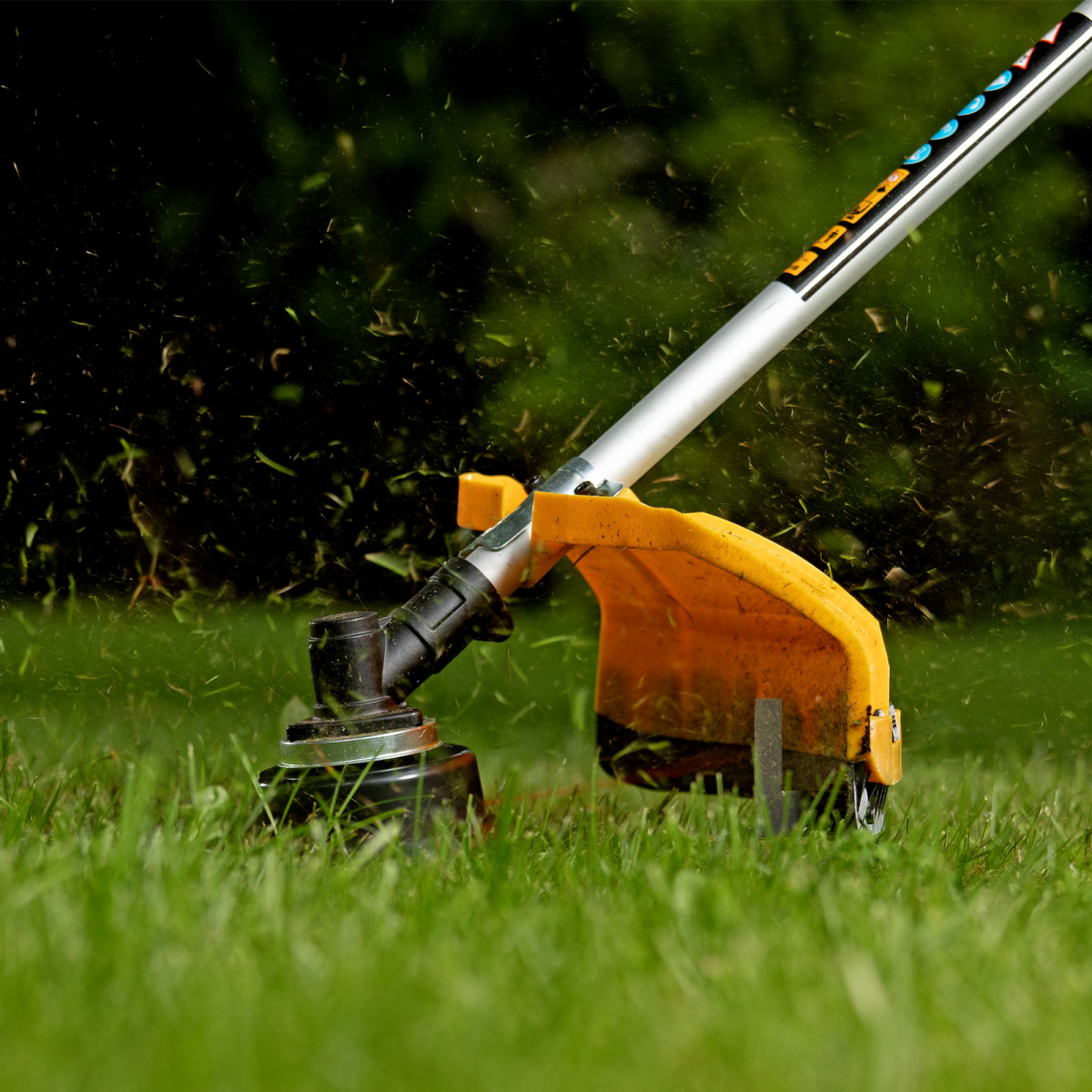 - Небольшой вес 7,6 кг — триммером легко маневрировать даже на сложных участках.