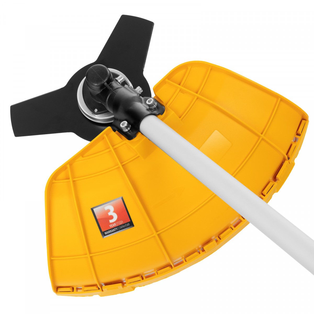 Бензиновый триммер Denzel DTS-33 962115 с двигателем объемом 33 куб. см и неразъемной штангой поставляется комплектом из 2 частей. Усиленная катушка с леской предназначена для скашивания мягкой травы, а трехлопастный нож — для скашивания травы различных типов, в том числе с жесткими стеблями (полыни, крапивы, лебеды). Ширина скашивания леской составляет 42 см, ножом — 25,5 см.,Двухтактный бензиновый двигатель мощностью 1,8 л.с. обеспечивает эффективное решение поставленных задач и полную автономность. Работать можно даже в самых отдаленных участках сада, не заботясь о наличии сети электропитания.