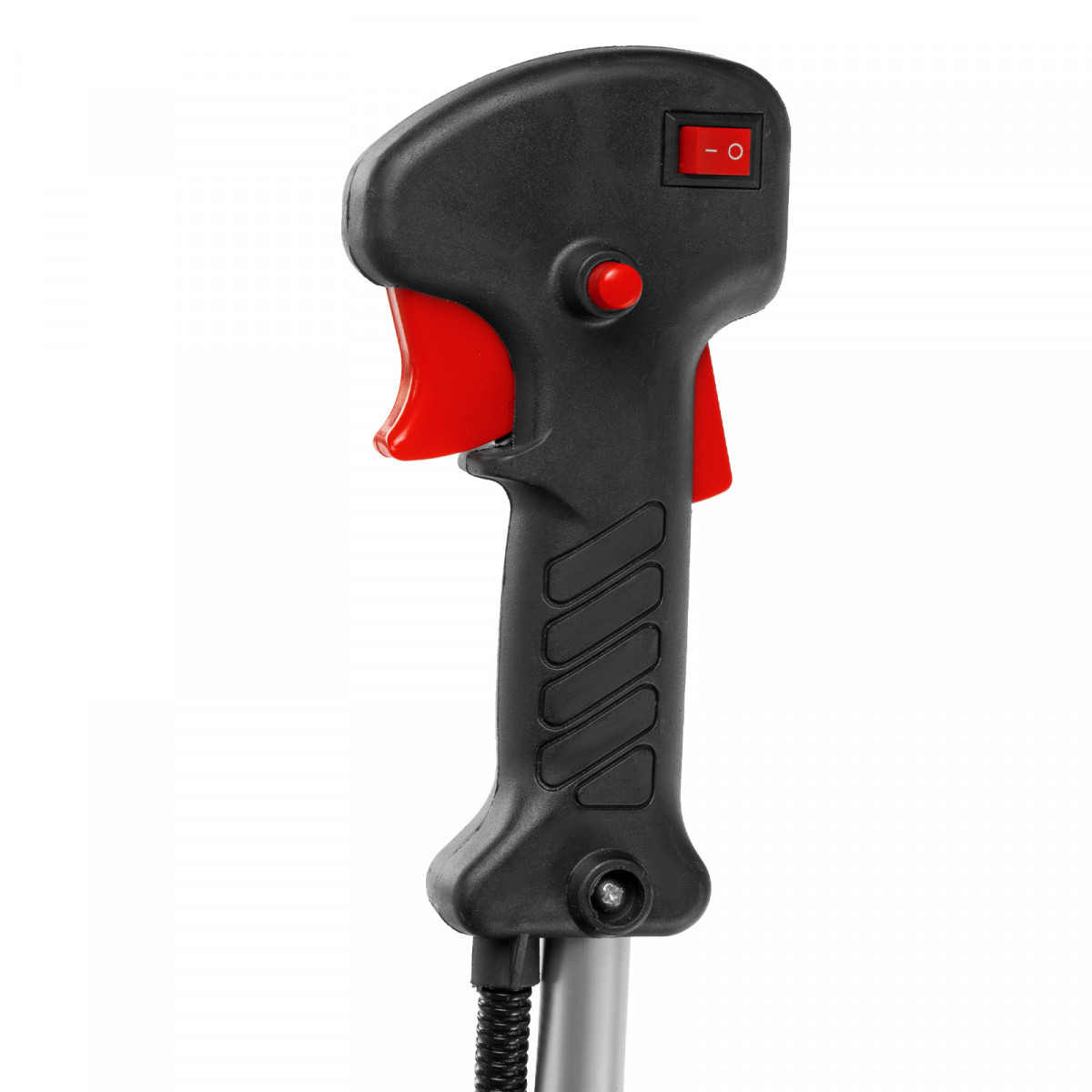 - Защита от случайного пуска — блокиратор курка газа предотвращает включение триммера по неосторожности, обеспечивая безопасность пользователя.