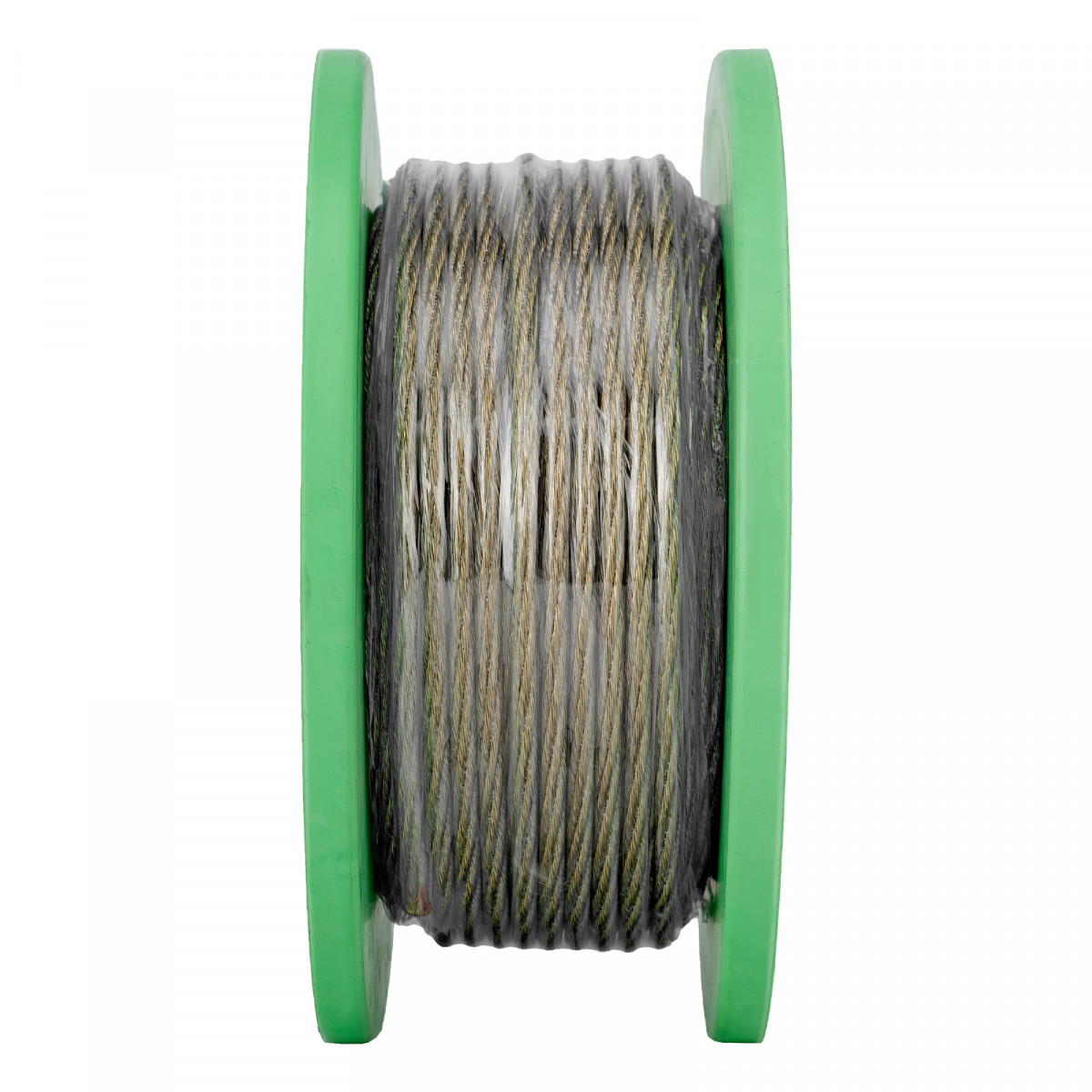 Стальной проволочный жилой трос устойчив к высоким нагрузкам благодаря латунированному сердечнику и ПВХ-покрытию.