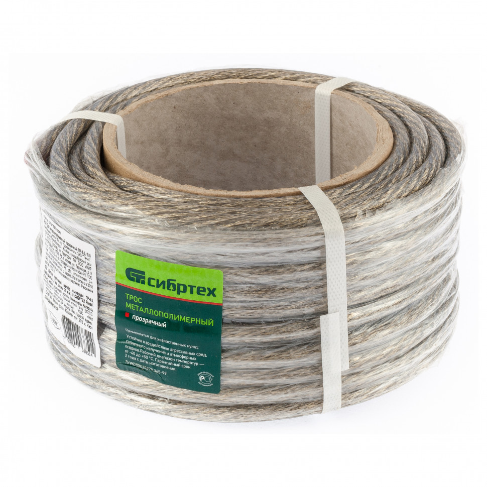 Трос металлополимерный прозрачный ПР-8.0, толщина 8.0 мм, моток 20 метров Сибртех