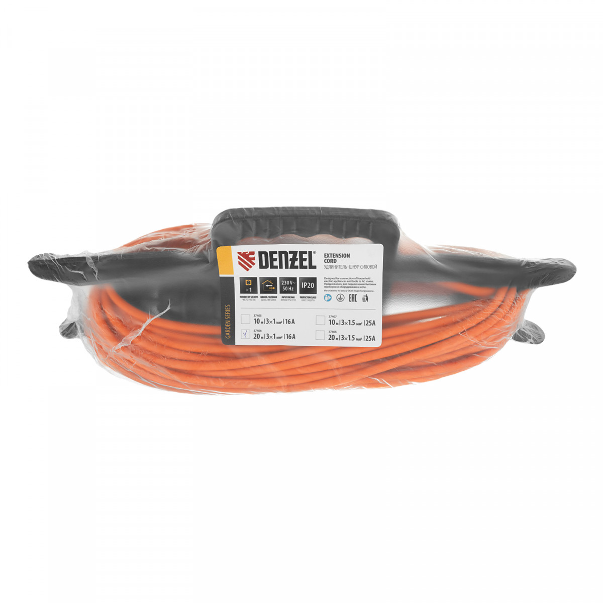 Удлинитель-шнур силовой Garden Series, ПВС, 20м, 1 розетка 3 x 1 мм, Denzel
