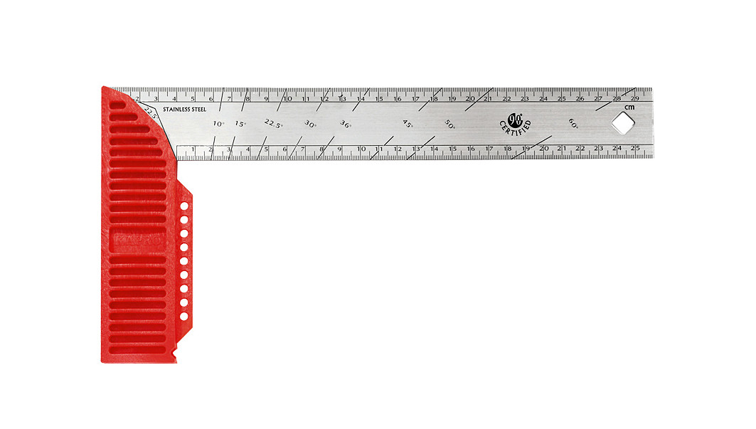 Угольник - это простой измерительный инструмент, который используется при проведении разметочных работ и проверке прямых углов. Мерная лента выполнена из нержавеющей стали, что обеспечивает долгий срок службы и устойчивость к коррозии. Рукоятка оснащена специальным выступом, позволяющим инструменту оставаться на плоскости без помощи рук. Выверенный угол равен 90°.