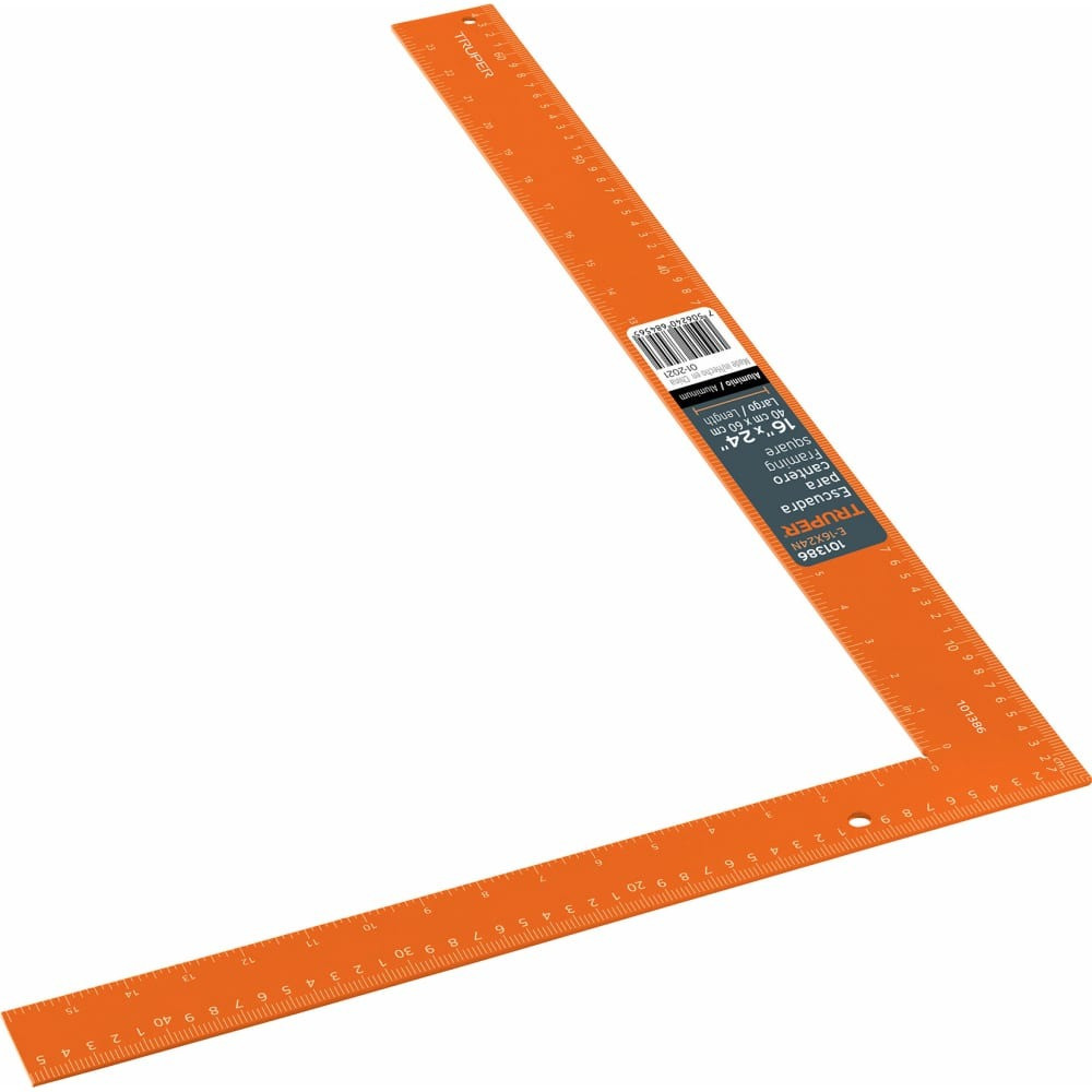 Металлический угольник Truper 41x61 см E-16x24N 101386 изготовлен из коррозионностойкого анодированного алюминия с отделкой оранжевого цвета, обеспечивающей высокую видимость и контрастность.