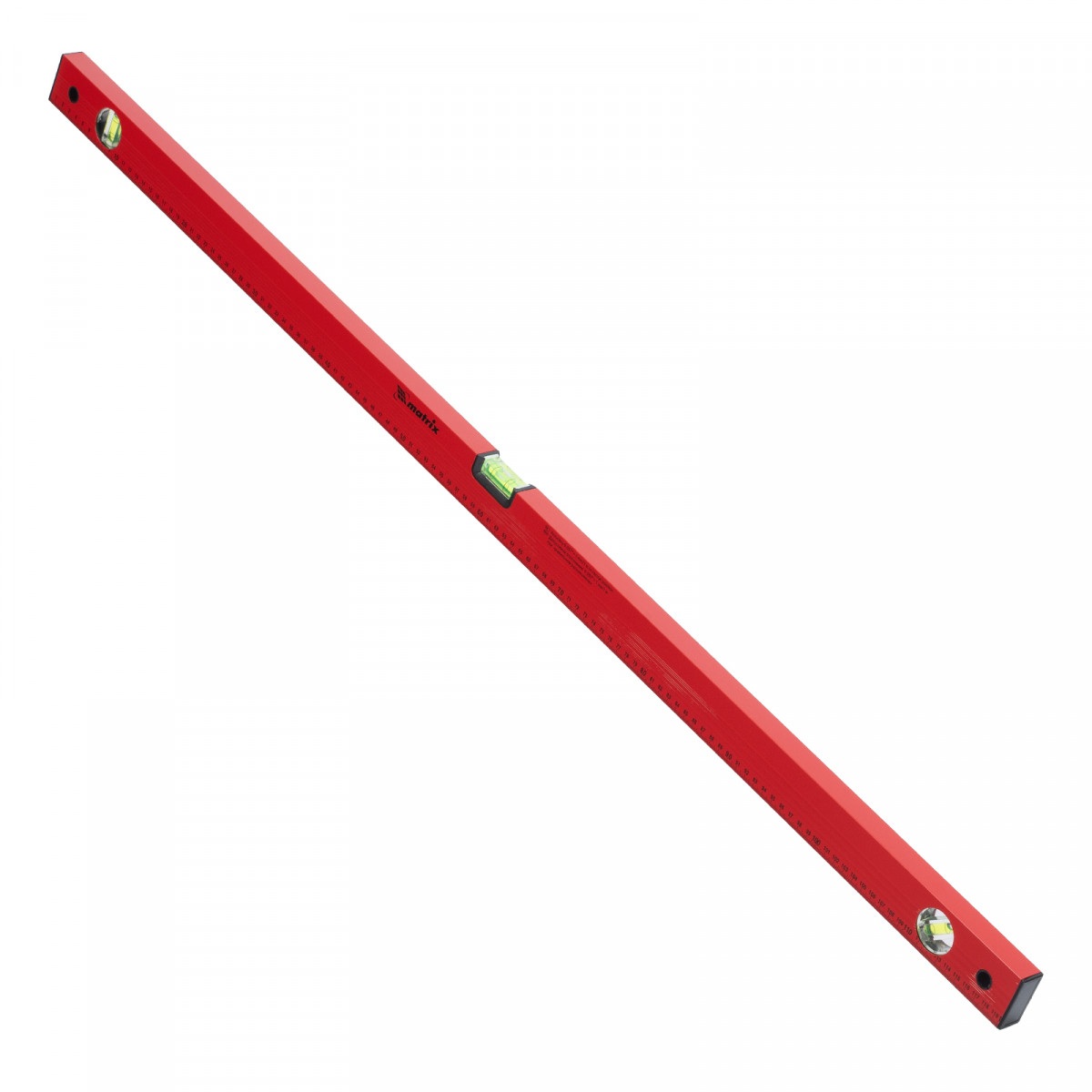 Алюминиевый уровень Matrix 33232 длиной 1200 мм, красного цвета, с 3 глазками и линейкой, пригодится при проведении строительных, ремонтных и монтажных работ. С ним повышается точность работы, что позволяет добиться качественного результата. Три колбы рассчитаны на проверку горизонтали, вертикали и угла 45 градусов, погрешность равна 1 мм/м (0,057 градуса).,Для определения отклонения вертикали 90 градусов необходимо использовать пузырьковую ампулу только в верхнем положении уровня. Только базовая поверхность является рабочей (противоположная ампуле 180 градусов).