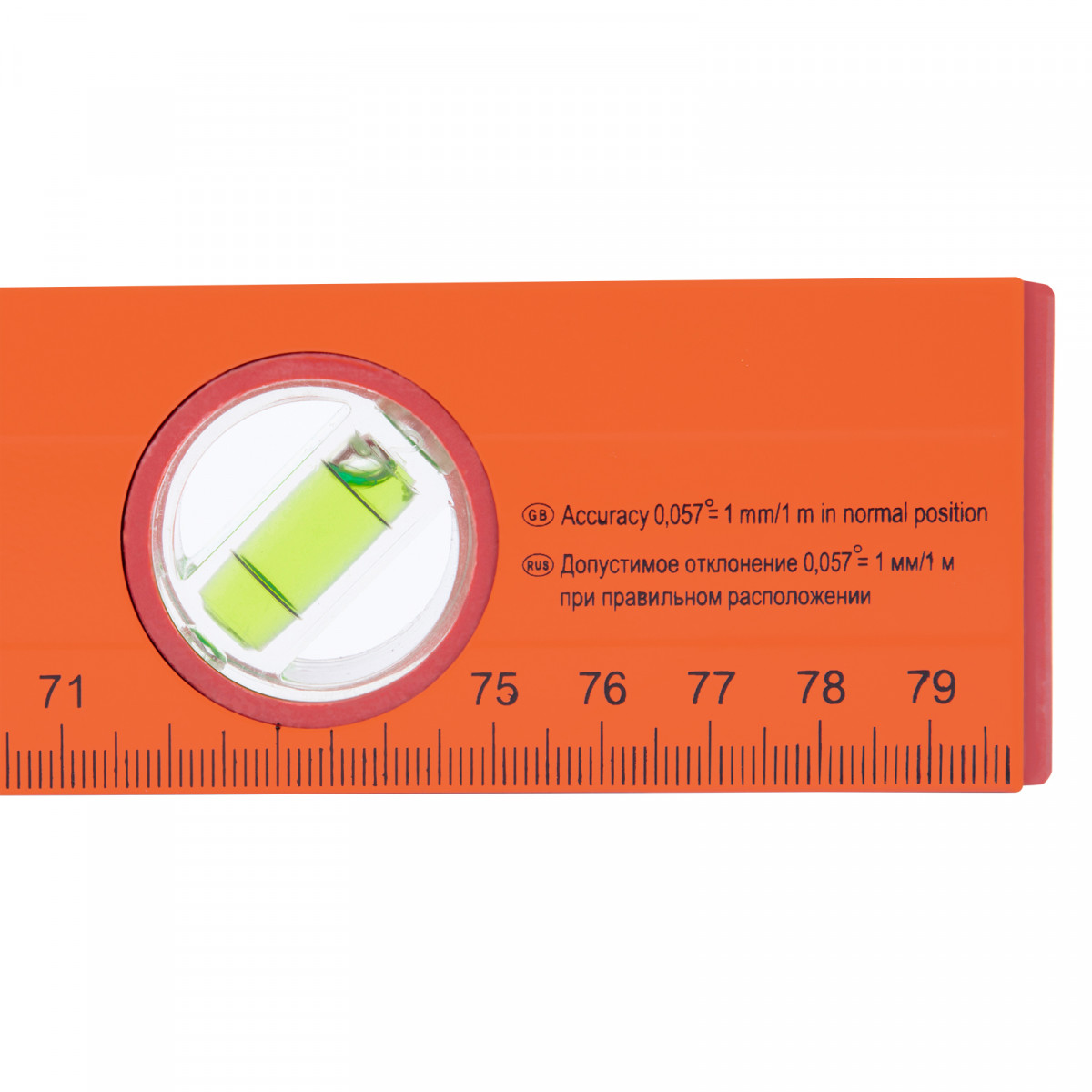 Алюминиевый уровень Sparta 330265 длиной 800 мм, желтого цвета, с 3 глазками и линейкой, будет полезен при проведении строительных, отделочных, облицовочных и других работ, требующих особой точности. Уровень с тремя глазками поможет определить отклонение от горизонтальной и вертикальной плоскости, выставить угол 45°, измерить предметы и т. д.