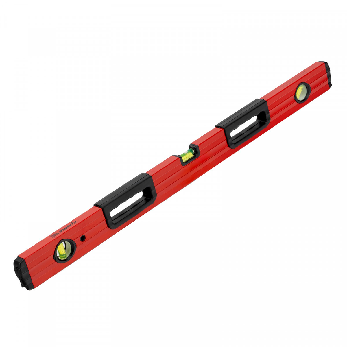 Фрезерованный алюминиевый уровень Matrix 33224 длиной 800 мм, с 3 глазками и 2 эргономичными ручками, поможет проверить горизонтальные и вертикальные поверхности, выставить угол 45 градусов. Он будет полезен на любом этапе строительства и ремонта: при облицовке и отделке поверхностей, монтаже конструкций и т.д. Погрешность измерений на метр не превышает 1 мм (0,057 градуса).,Для определения отклонения вертикали 90 градусов необходимо использовать пузырьковую ампулу только в верхнем положении уровня. Только базовая поверхность является рабочей (противоположная ампуле 180 градусов).