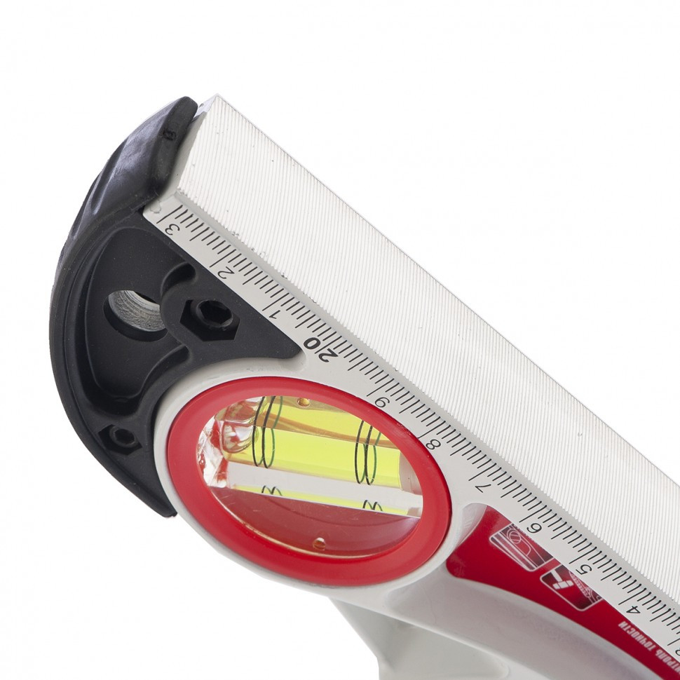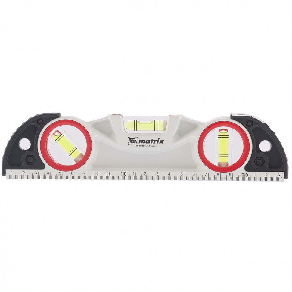 Уровень алюминиевый литой Matrix 34910 длиной 235 мм, с фрезерованной рабочей частью, 3 глазками и двумя ударными площадками, предназначен для проверки поверхностей на отклонение от горизонтали, вертикали и угла 45°. Инструмент значительно повышает точность проводимых работ, пригодится частному мастеру и профессионалу на строительной площадке, во время ремонта и для проведения монтажных работ.