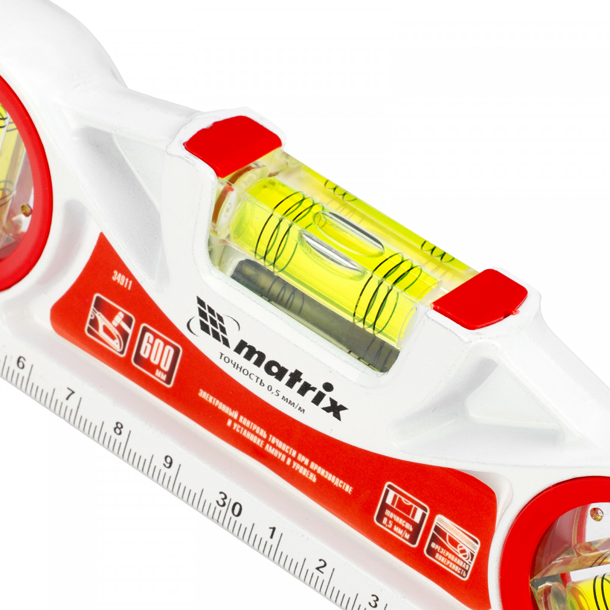 Уровень алюминиевый литой Matrix 34911 длиной 600 мм, с фрезерованной рабочей частью, 3 глазками и двумя ударными площадками, предназначен для проверки поверхностей на отклонение от горизонтали, вертикали и угла 45°. Инструмент значительно повышает точность проводимых работ, пригодится частному мастеру и профессионалу на строительной площадке, во время ремонта и для проведения монтажных работ.