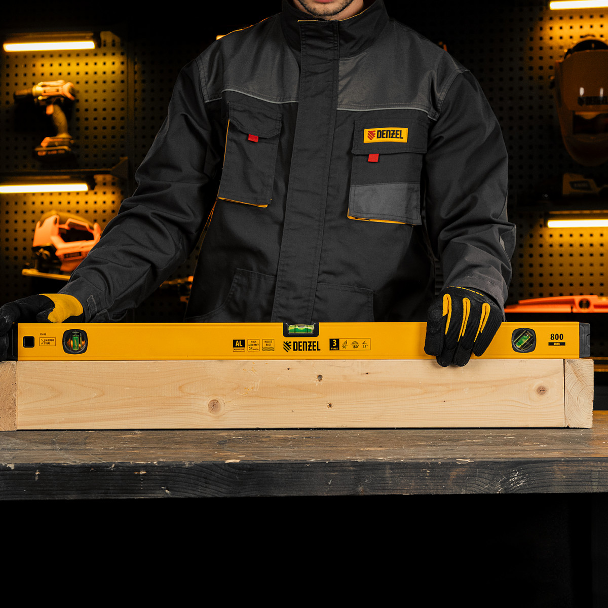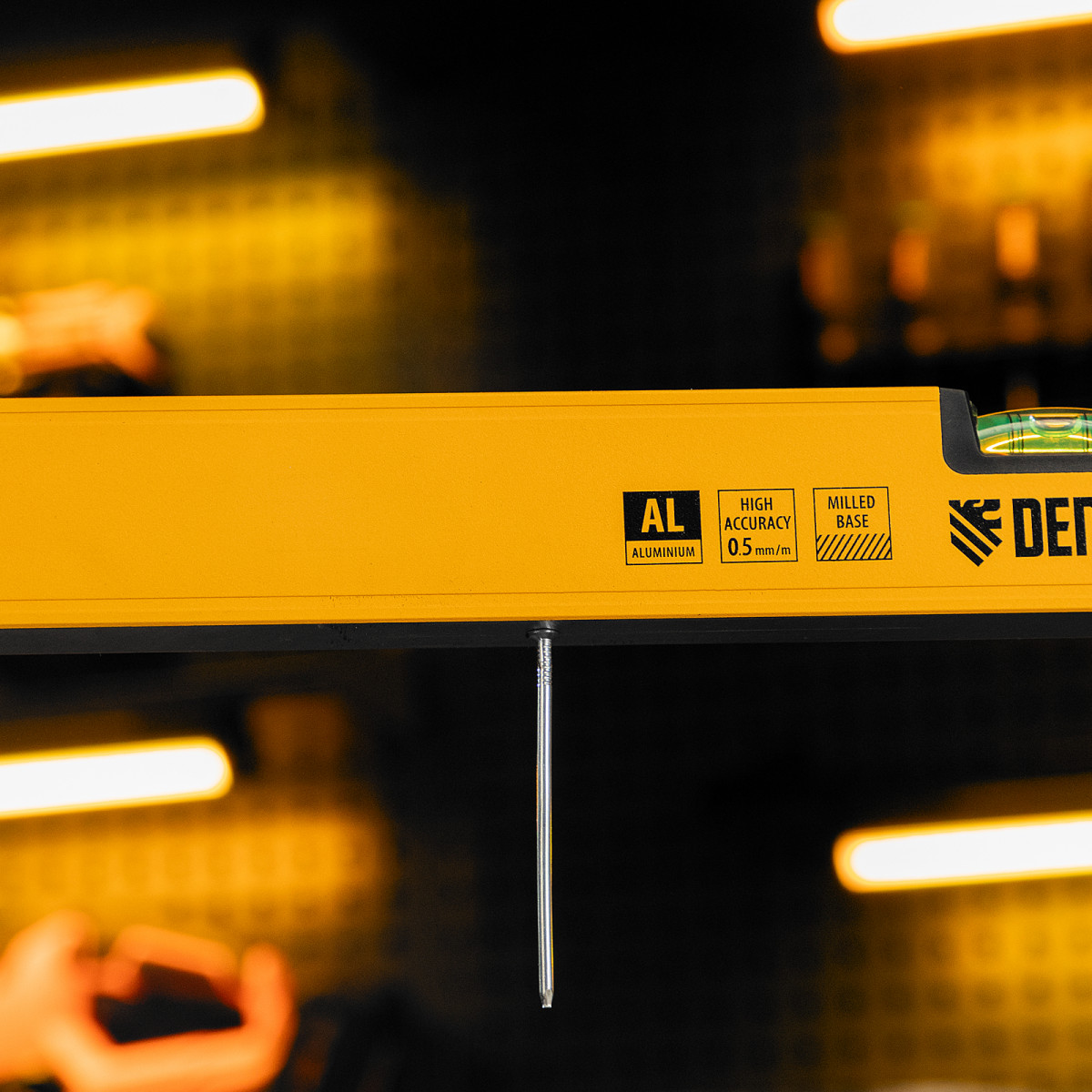 Уровень алюминиевый, магнит, фрезерованный, 3 глазка (1 зеркал.) 0,5 мм/м, 800 мм Denzel