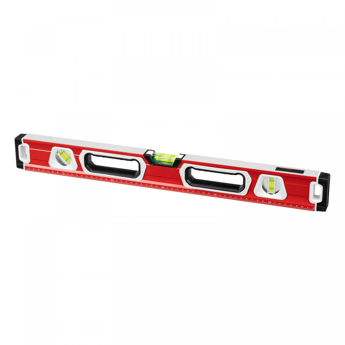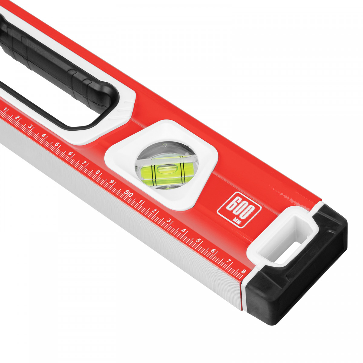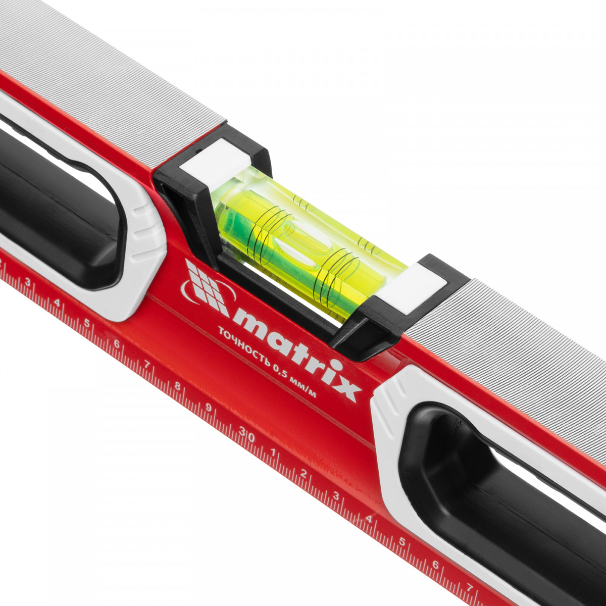 Алюминиевый уровень Matrix 34731 длиной 600 мм, магнитный, фрезерованный, с двухкомпонентными рукоятками, 3 глазками и 1 зеркальным отражателем, относится к категории измерительных инструментов. Служит для контроля отклонений поверхностей от горизонтали, вертикали и угла 45 градусов. Инструмент понадобится при осуществлении работ, требующих высокой точности.,Для определения отклонения вертикали 90 градусов необходимо использовать пузырьковую ампулу только в верхнем положении уровня. Только базовая поверхность является рабочей (противоположная ампуле 180 градусов).