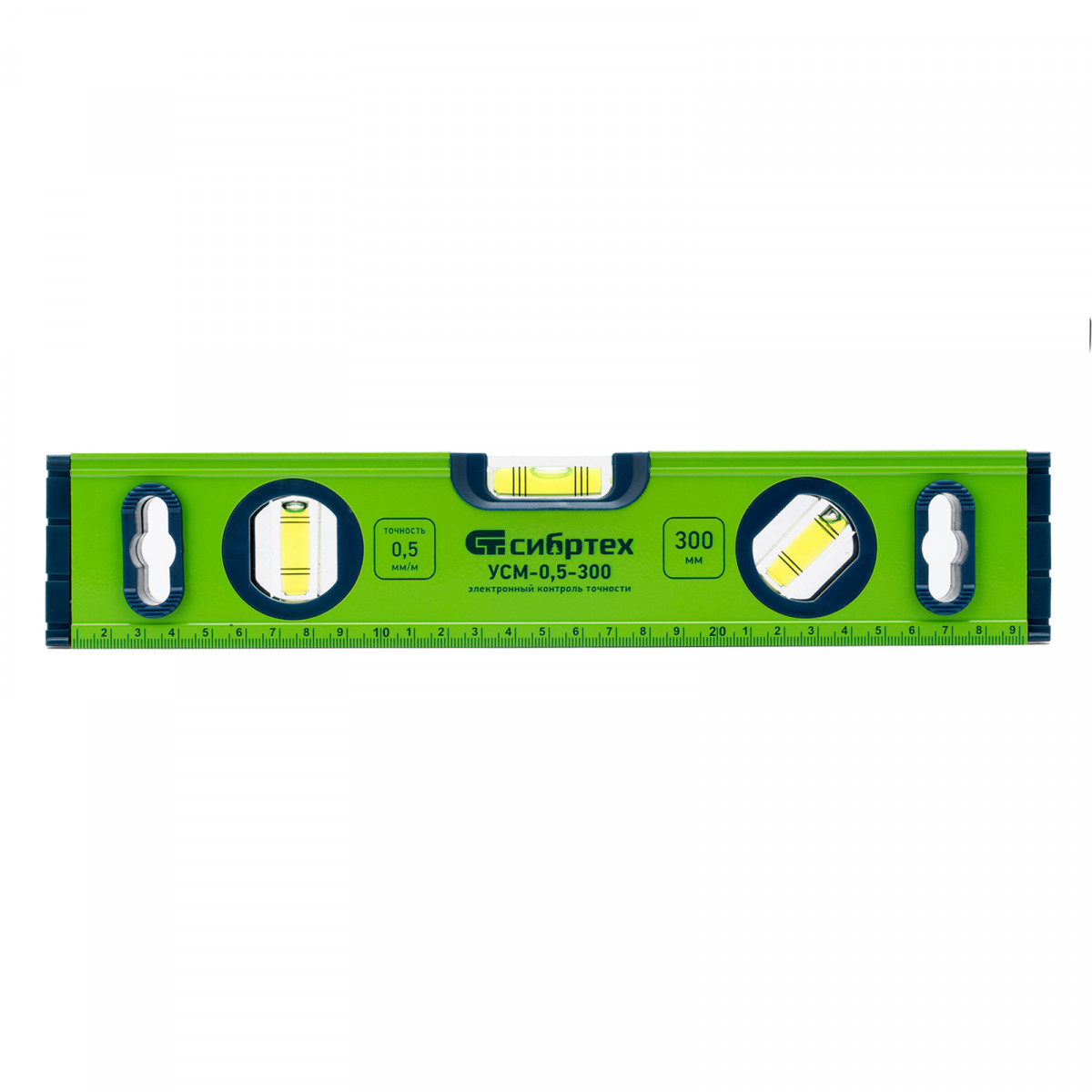 Алюминиевый фрезерованный уровень Сибртех УСМ-0,5-300 34111 длиной 300 мм, магнитный, с 3 глазками, поможет найти отклонения от горизонтальной и вертикальной плоскостей и угла 45 градусов. Инструмент незаменим при осуществлении строительных и ремонтных работ, т.к. обеспечивает высокую точность работы.,Для определения отклонения вертикали 90 градусов необходимо использовать пузырьковую ампулу только в верхнем положении уровня. Только базовая поверхность является рабочей (противоположная ампуле 180 градусов).