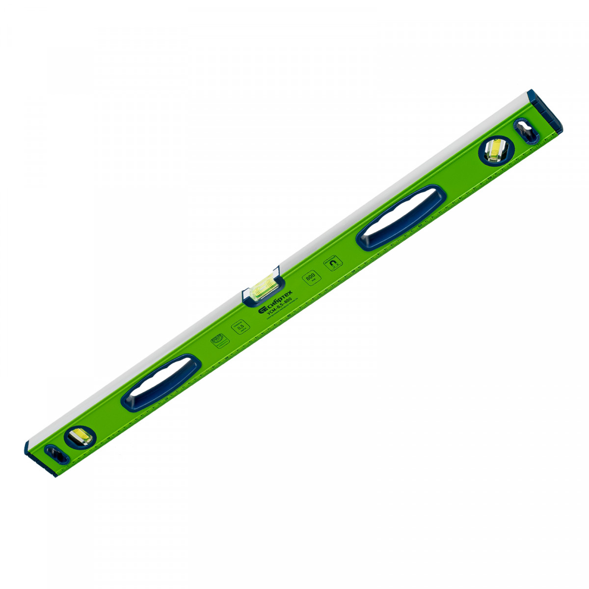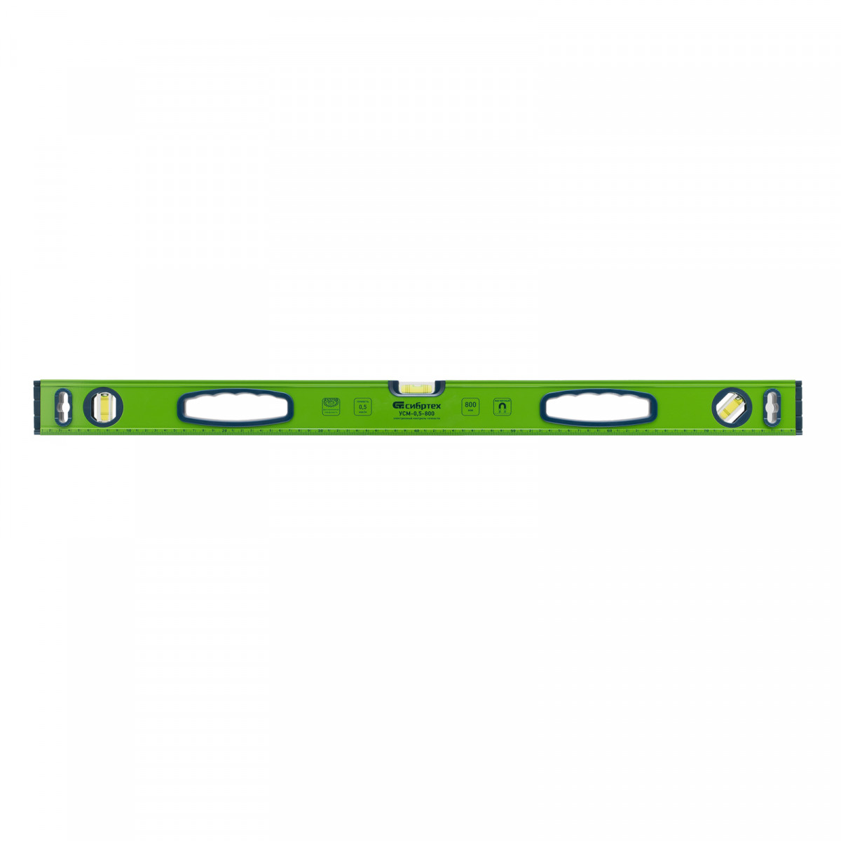 Уровень алюминиевый УСМ-0,5-800, фрезерованный, 3 глазка, магнитный, рукоятки, 800 мм Сибртех