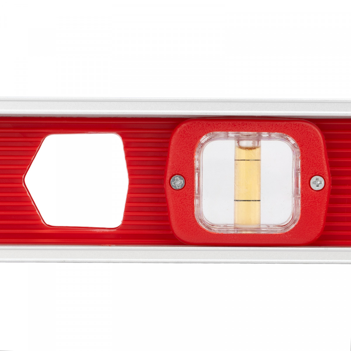 - Удобная фиксация на металлических поверхностях — уровень снабжен встроенными магнитами.