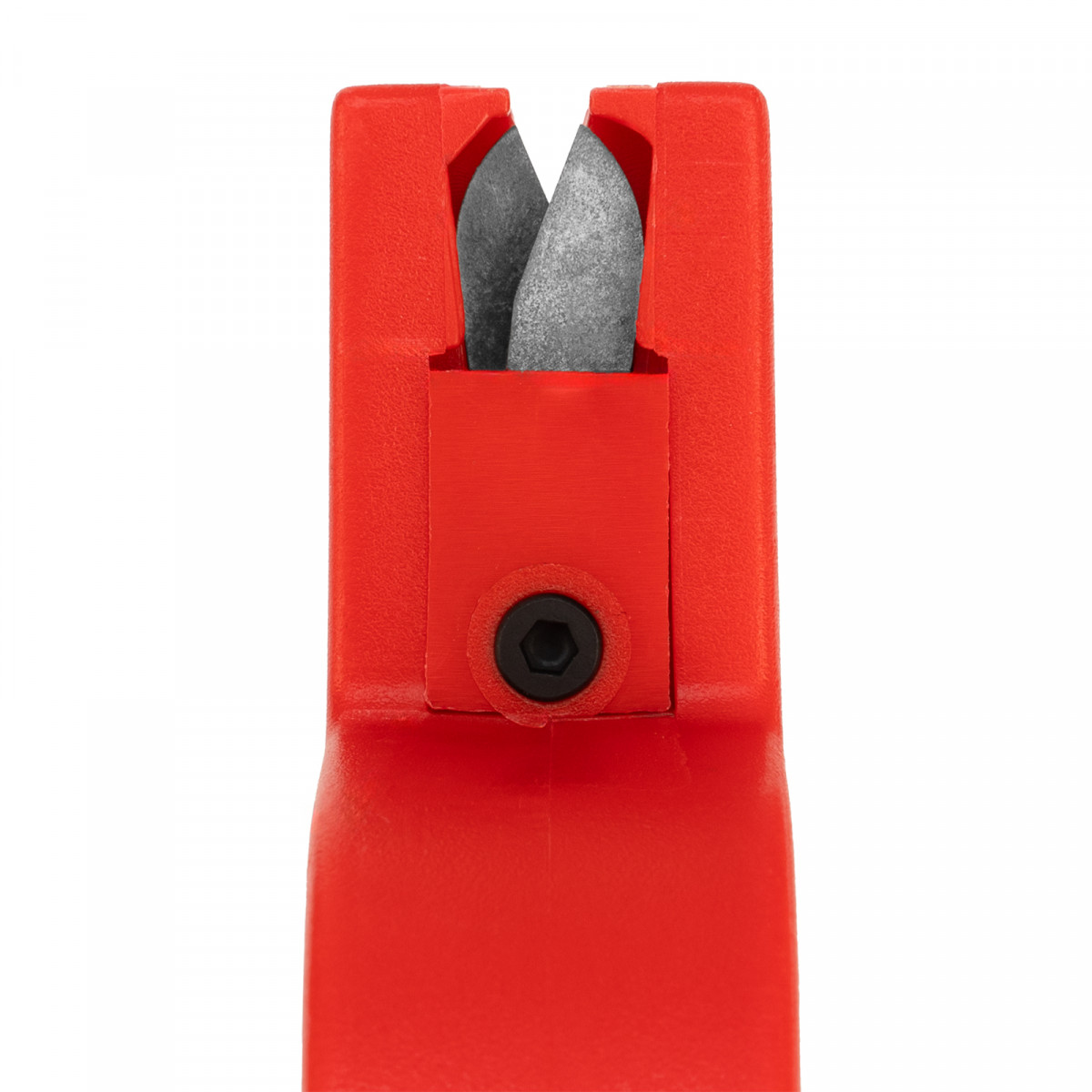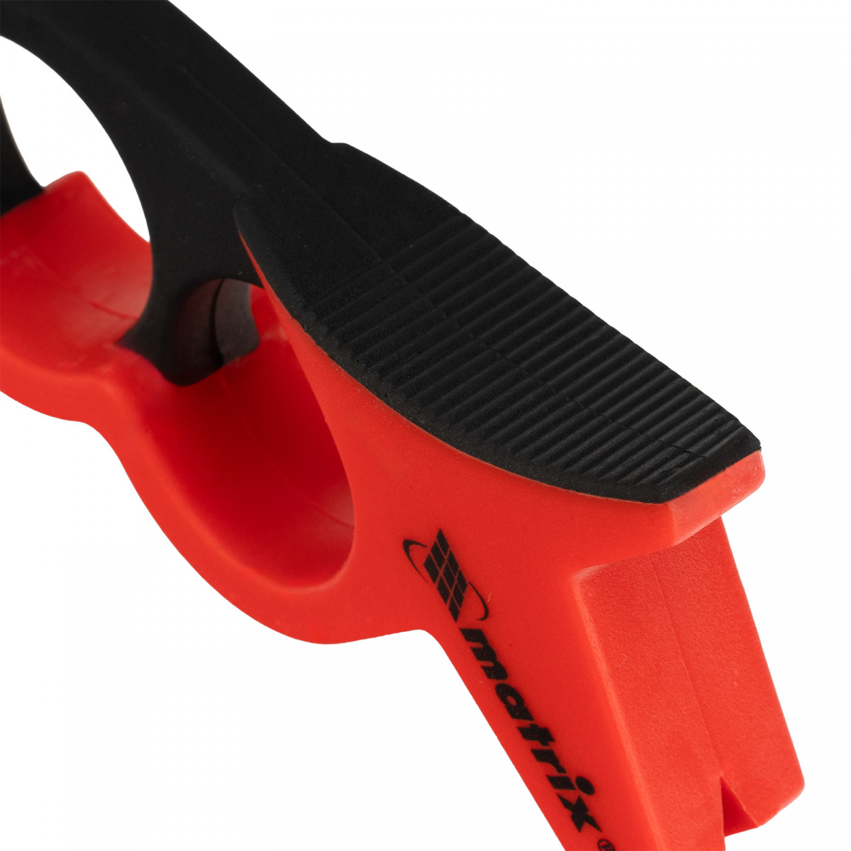 Универсальное устройство для заточки Matrix 79101, малое, служит для восстановления остроты ножей, а также кос, тесаков, резаков и других режущих инструментов. У точилки имеется защитная кулиса, поэтому она безопасна в эксплуатации. Устройством могут пользоваться как правши, так и левши. Способ применения прост — достаточно 1-2 раза провести точилкой по режущей кромке. Приспособление рекомендовано для использования в быту.