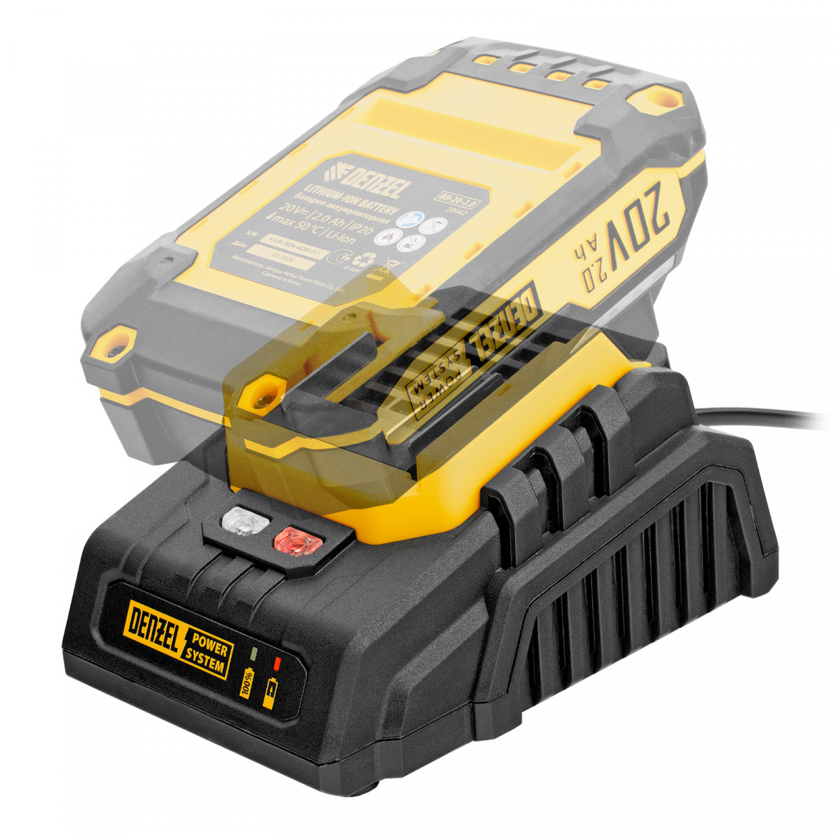 Устройство зарядное для аккумуляторов BCH-20-2.0, Li-Ion, 20 В, 2,0 А// Denzel