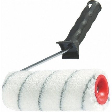 Валик произведен по технологии Termofusion, что обеспечивает высокую износостойкость, так как исключает отслаивание шубки от основания даже при многократном использовании. Бесшовная структура шубки способствует равномерному нанесению краски на поверхность. Улучшенная конструкция ролика обеспечивает свободное вращение. Валик применяется для работ с водно-дисперсионными красками и красками на основе химических растворителей, предназначен для нанесения краски на среднешероховатые поверхности. Ручка в комплекте, бюгель оцинкован.