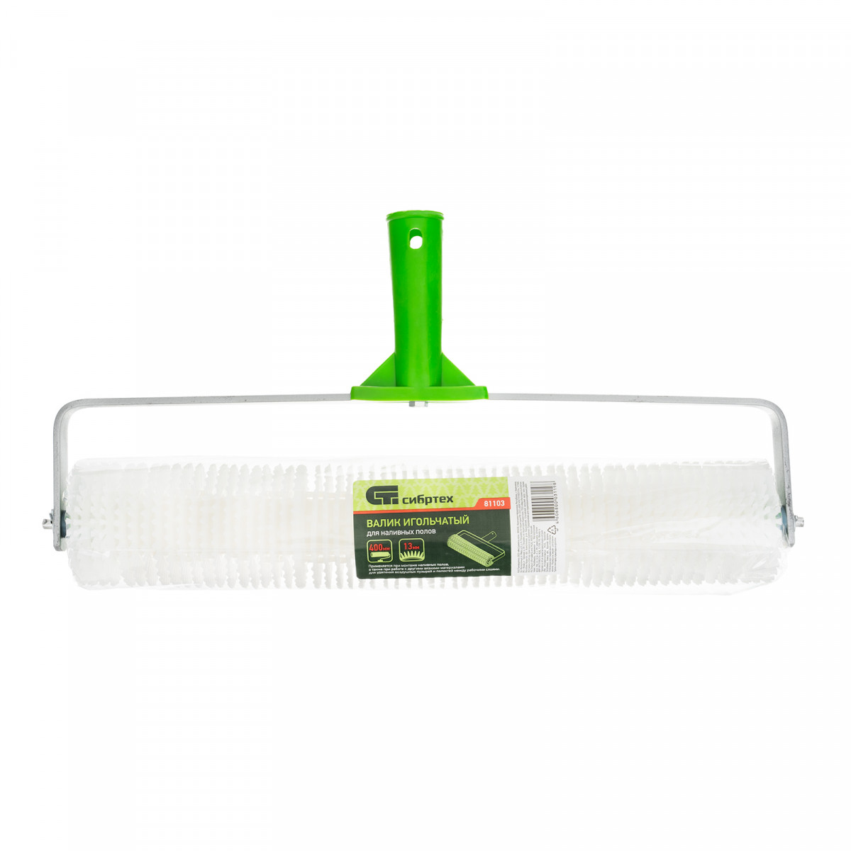 Игольчатый валик Сибртех 81103 длиной 400 мм используется для монтажа наливных полов. Позволяет удалять пузырьки воздуха из толщи еще жидкого покрытия путем его интенсивного прокатывания по распределенному на поверхности основы раствору. Валик длиной 400 мм можно использовать на поверхности большой площади. Длина иголок 13 мм оптимальна для покрытий небольшой толщины.