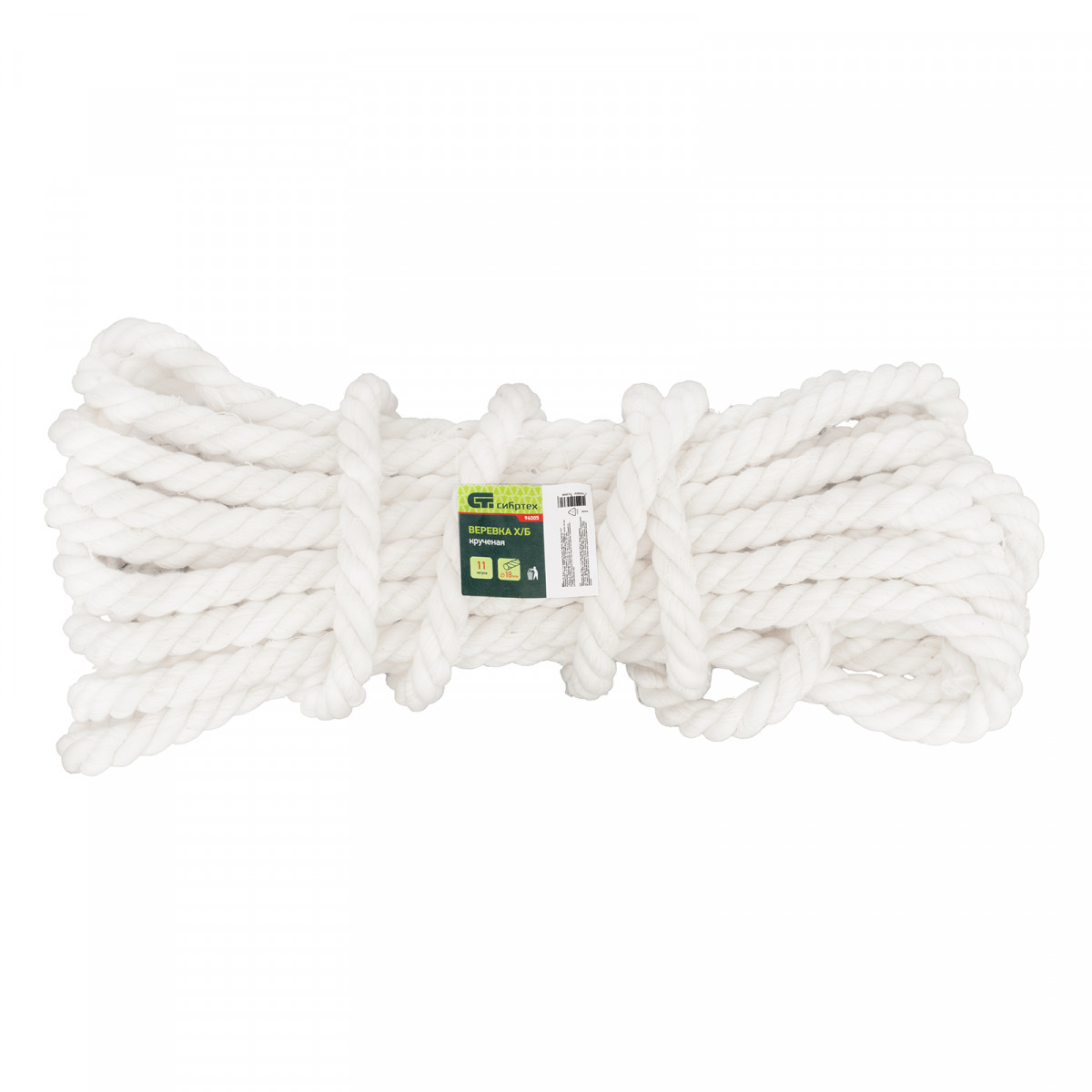 Крученая х/б веревка Сибртех 94005, 18 мм, L 11 м, используется в домашнем хозяйстве и для грузоперевозок, а также в садоводстве, туризме, промышленности. Благодаря толщине 18 мм изделие обладает необходимой прочностью.