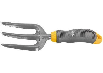 Вилка посадочная 3-зубая с эргономичной двухкомпонентной рукояткой. Ширина рабочей части 85 мм, длина рабочей части 130 мм, общая длина 270 мм. Предназначена для высадки и пересадки цветов, рассады, рыхления почвы на небольших грядках и клумбах. Рабочая часть выполнена из инструментальной стали У8 и окрашена порошковой эмалью для предохранения от коррозии. Рукоятка, залитая термопластичной резиной, имеет эргономичную форму, что позволяет работать максимально комфортно. По окончании работы необходимо очистить рабочую часть инструмента от остатков грунта.