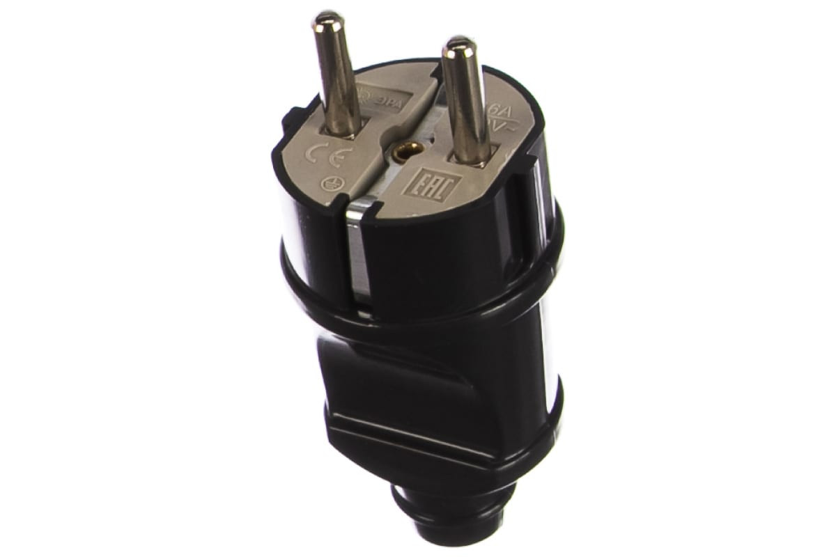 Вилка прямая с/з 16A черная Vx2-B ЭРА