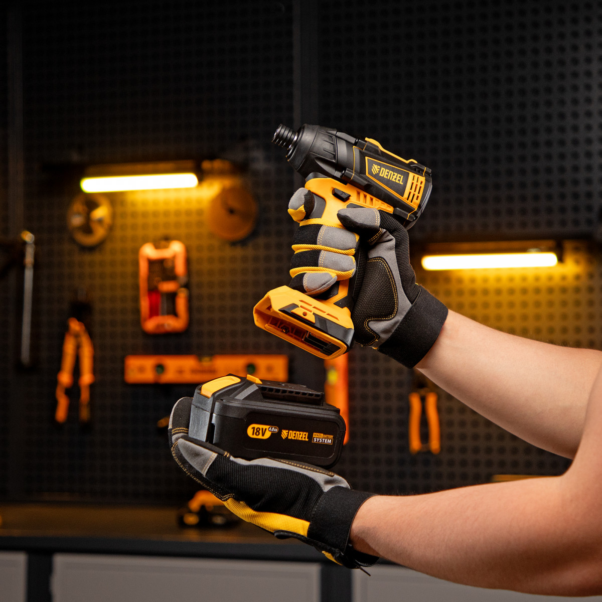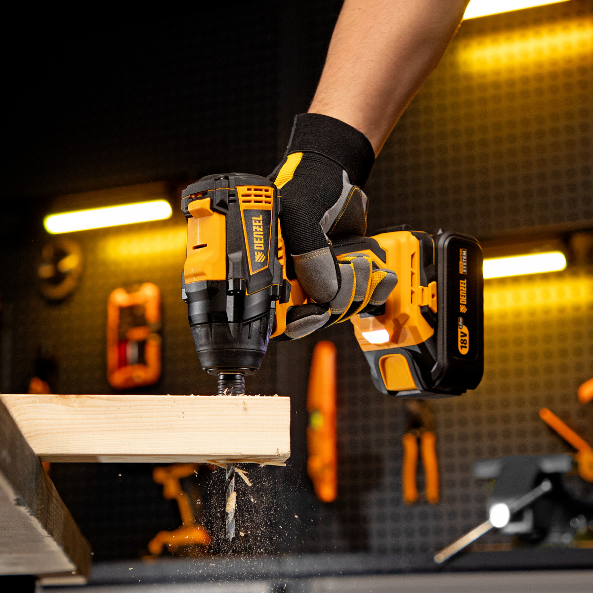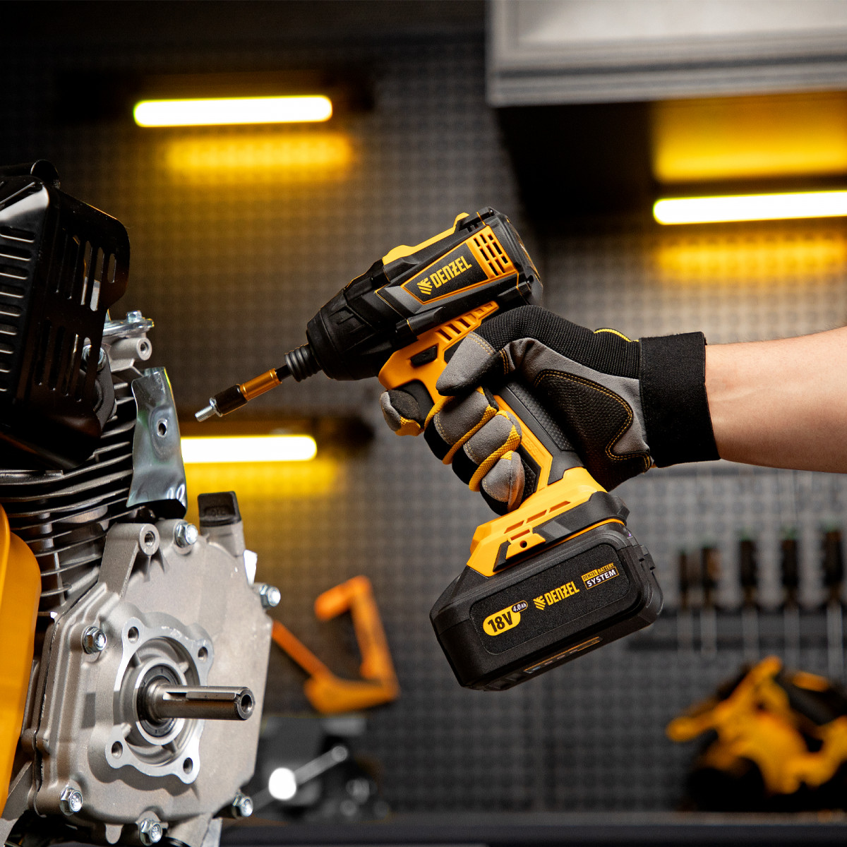 • Универсальность — к инструменту подойдут любые 18 В аккумуляторы Denzel battery system