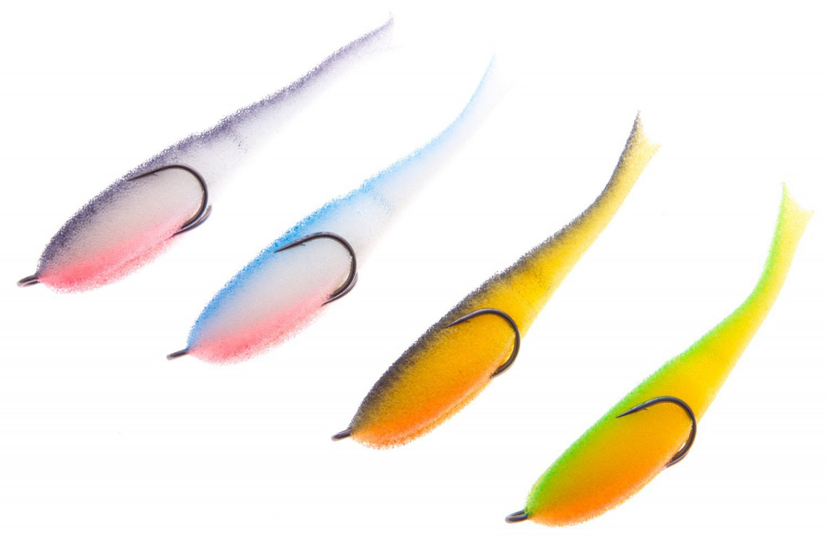 Широкая цветовая палитра позволяет подобрать оптимальный вариант приманки для различных условий ловли. Для увеличения срока службы следует просушивать рыбок после каждой рыбалки.
