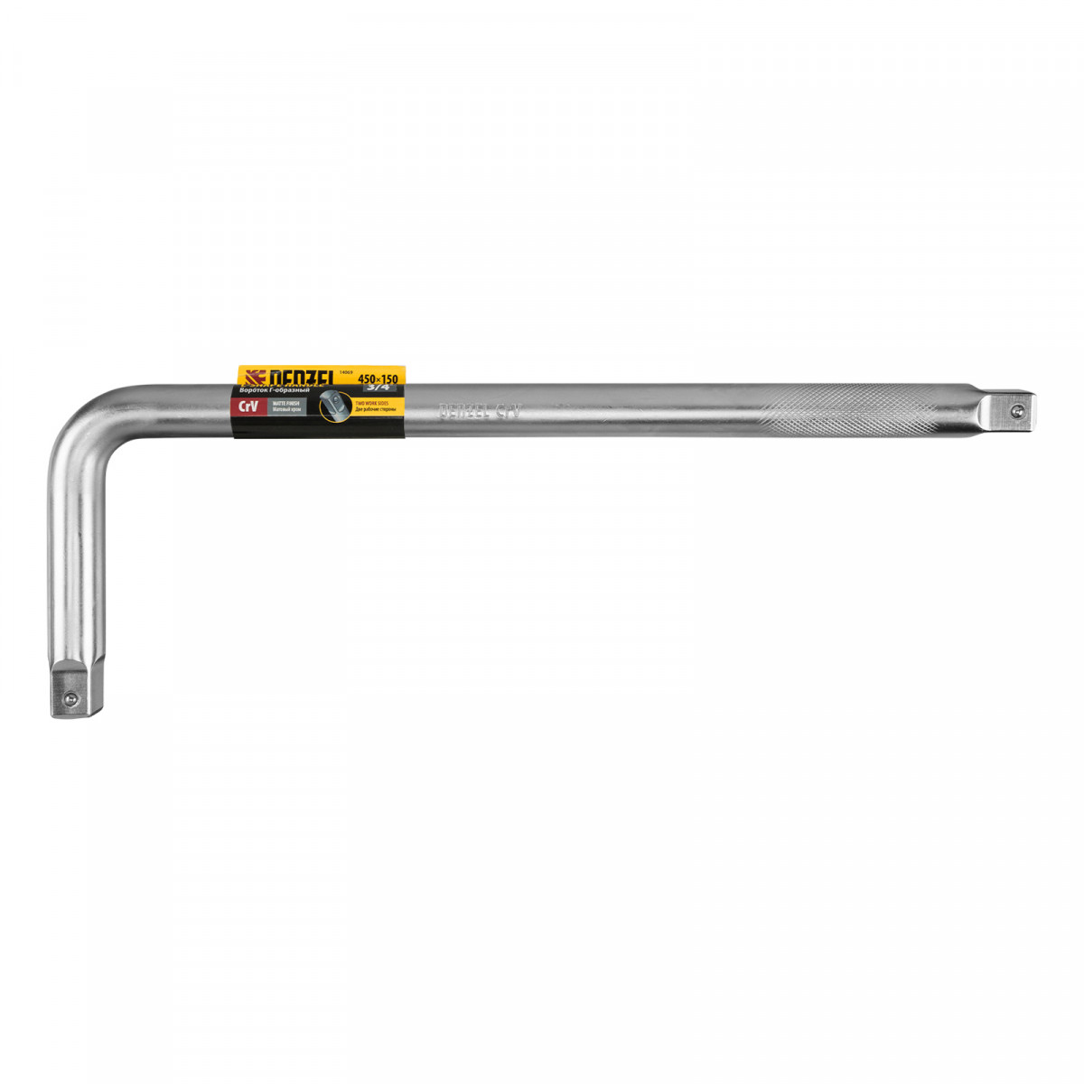 Вороток Г-образный, 450*150 мм, квадрат 3/4", CrV, матовый хром Denzel