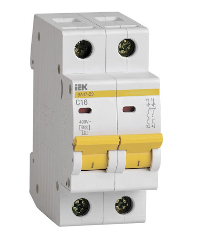 Выключатель автоматический 2Р 16А 4,5кА характеристика C ВА47-29 IEK