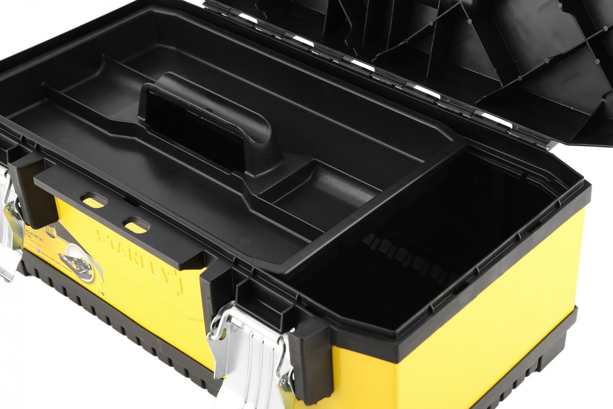 Ящик 20" Stanley 1-95-612 предназначен для хранения и транспортировки инструментов. Две металлические защелки надежно защищают от непреднамеренного открывания. Можно отдельно установить навесной замок. Такой ящик пригодится как профессионалу, так и домашнему мастеру: он позволяет держать инструменты и крепежные детали в одном месте и обеспечивает их сохранность. Сверху располагается переносной лоток для мелких деталей. Приспособление оснащено удобной ручкой. Выполнено из прочных материалов, способно выдержать большие нагрузки. Отлично подходит для работы с трубами и пиломатериалами.