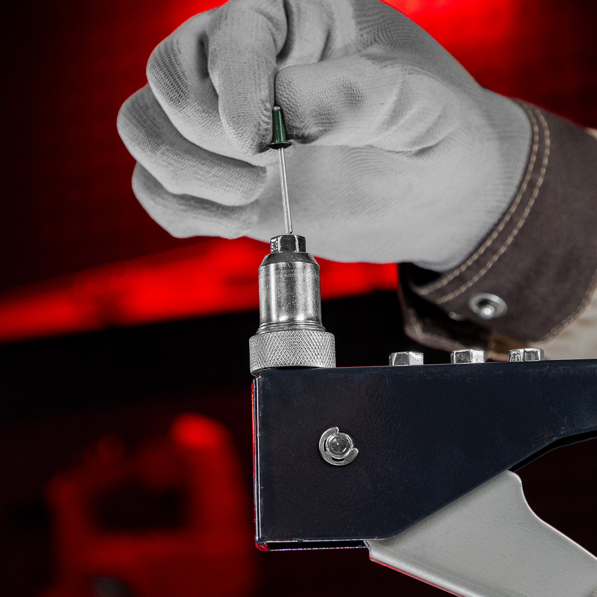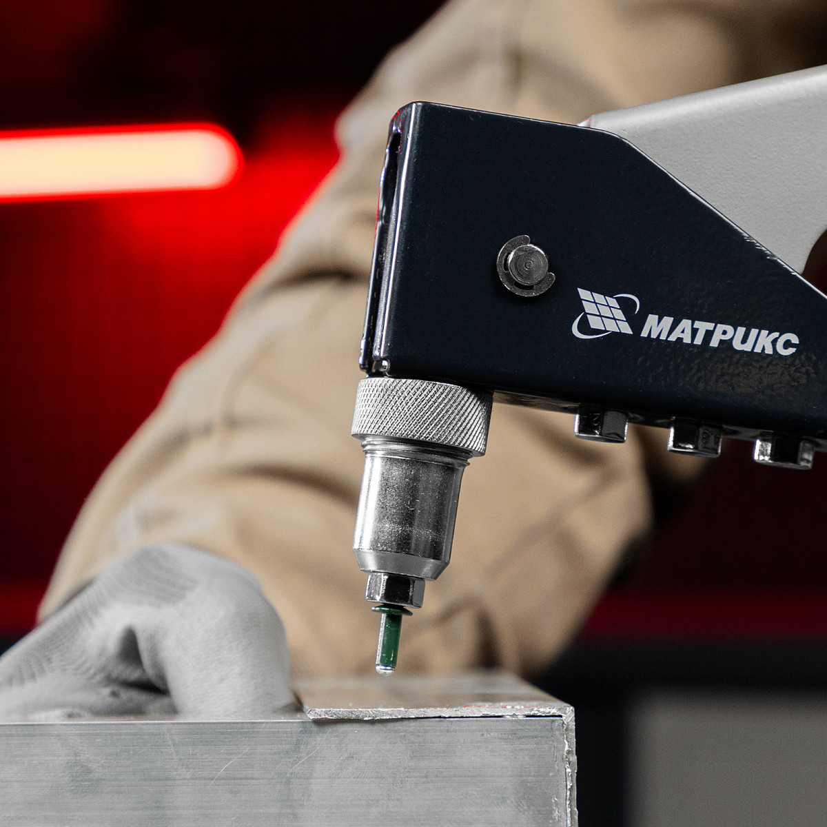 - Быстрая установка насадок — сменные головки для заклепок разных диаметров размещены на корпусе, монтажный ключ для их замены входит в комплект поставки.