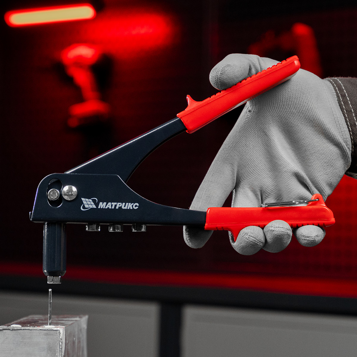 Заклепочник Матрикс 40524 длиной 250 мм используется с вытяжными заклепками диаметром от 2,4 до 4,8 мм. Инструмент применяется при работе с многослойным материалом и различными деталями из металла, пластика и т. д. В комплект входят сменные насадки для заклепок различного диаметра, фиксирующиеся на корпусе инструмента, поэтому их можно быстро менять при необходимости. Заклепочник будет полезен во время проведения строительных и ремонтных работ, пригодится также дома, в гараже или на даче.