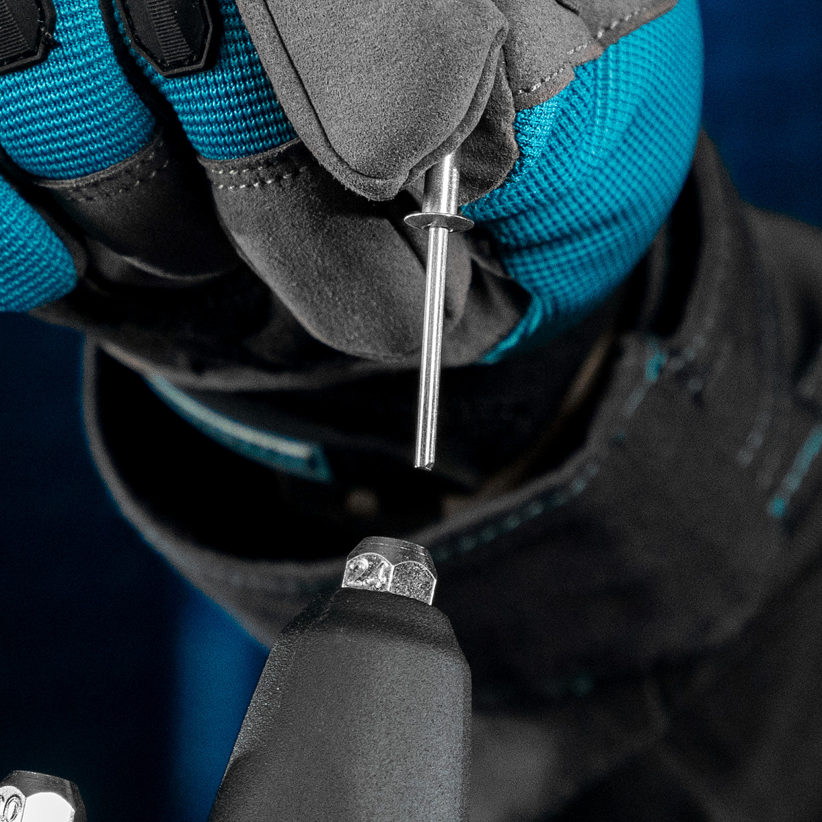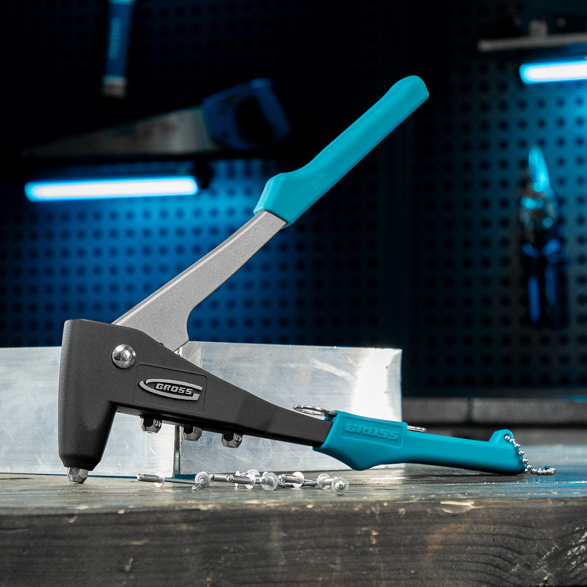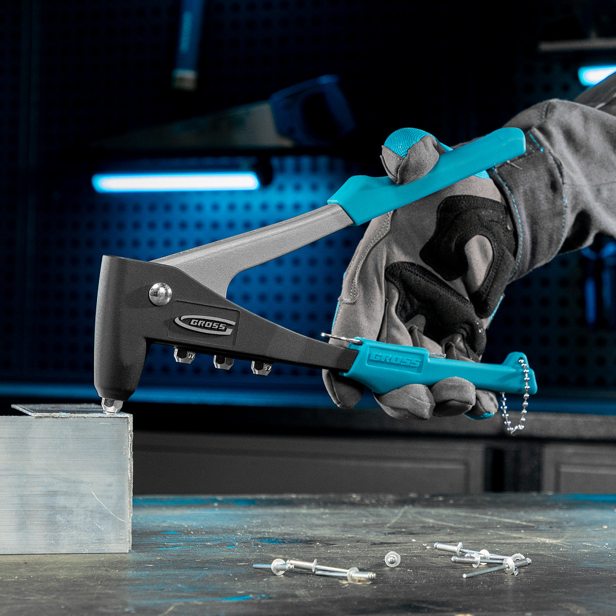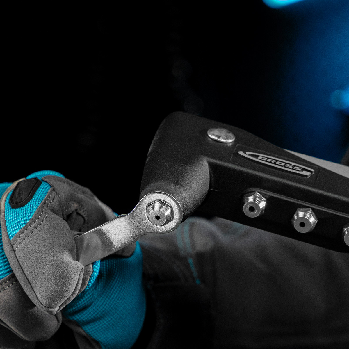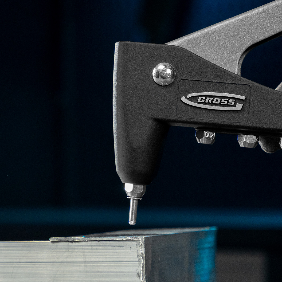 • Стальной штампованный рычаг и литой корпус обеспечивают устойчивость к нагрузкам и высокий эксплуатационный ресурс заклепочника.