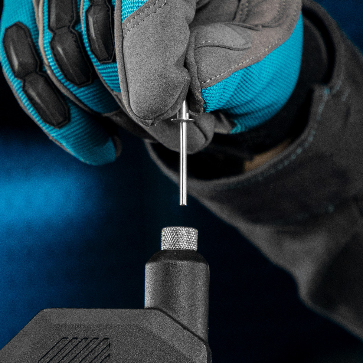 • Продуманная конструкция — сменные насадки устанавливаются в корпус заклепочника, поэтому они не потеряются.
