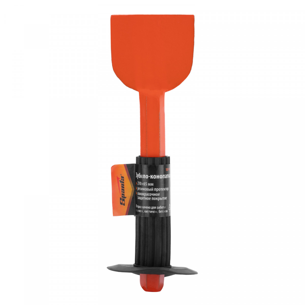 Зубило-конопатка с протектором Sparta 187495 размером 210 х 65 мм — ударно-режущий инструмент для скалывания с различных поверхностей керамической плитки и старой отделки, для очистки кирпича от кладочного раствора. Применяется также для уплотнения пазов между деревянными срубами с целью повышения теплоэффективности и защиты дома, бани или других построек от продувания. Зубило-конопатка пригодится на строительной площадке и в быту.